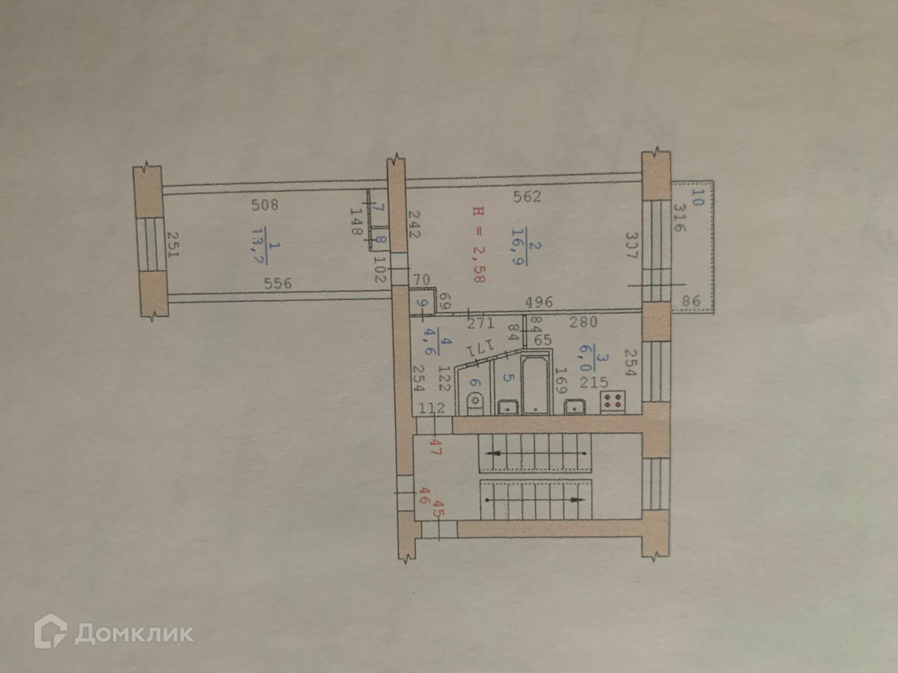 Общая площадь 44.6 м2
