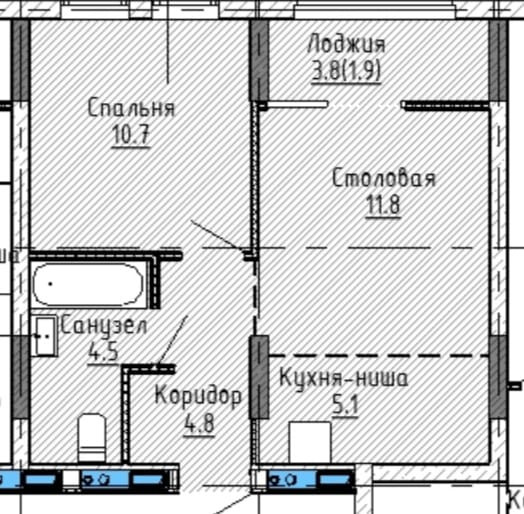 Жилая площадь 10.7 м2