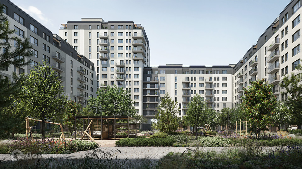 Закрытый двор с детской площадкой и прогулочной зоной.