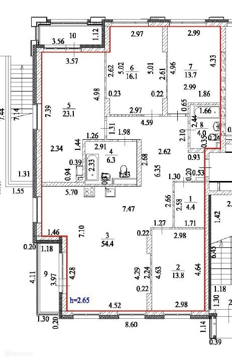 Высота потолков 2.65 м