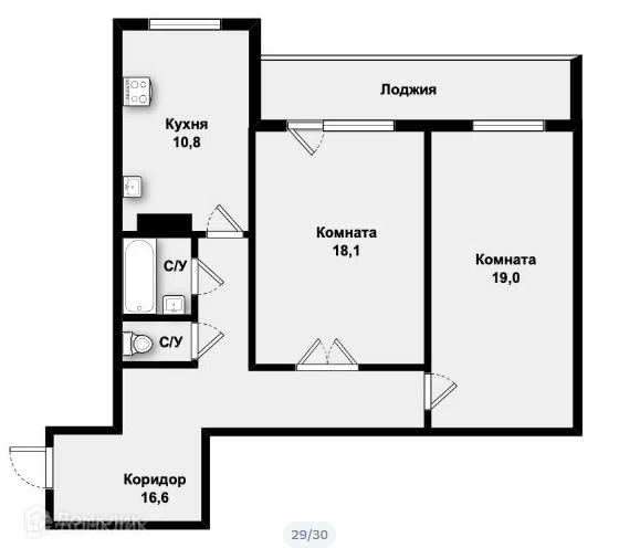 Балкон, лоджия 1 лоджия