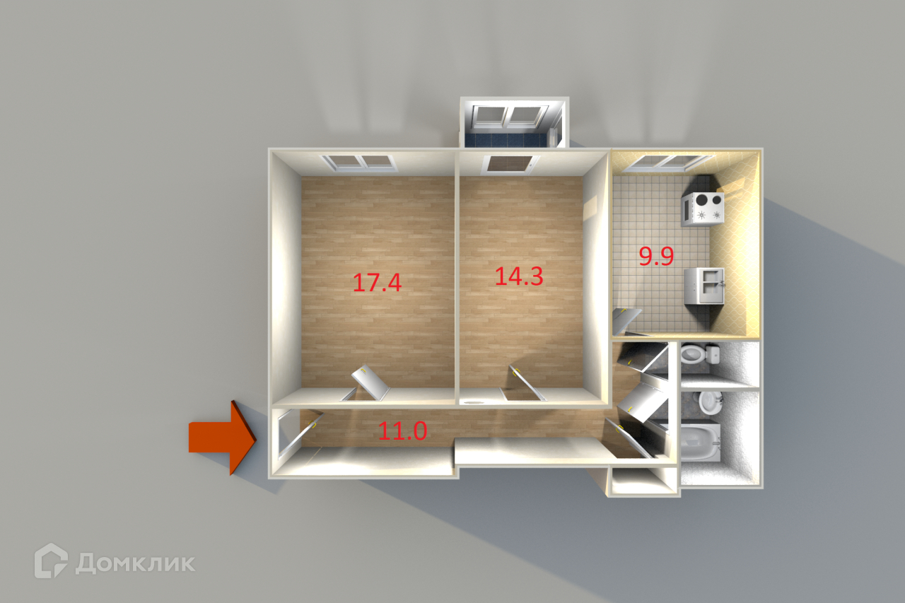 Общая площадь 57.4 м2