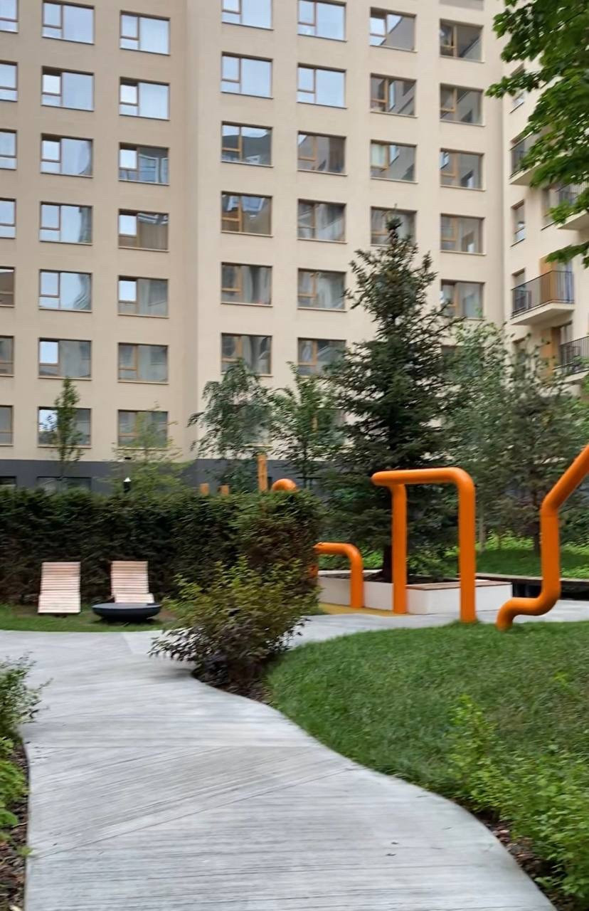 В доме подземный паркинг, закрытый двор без машин, сквозные входы связывают улицу и двор, входные группы расположены на уровне земли, система видеонаблюдения внешнего периметра и внутренней территории, в доме есть колясочные и велосипедные комнаты с доступом только для жителей.