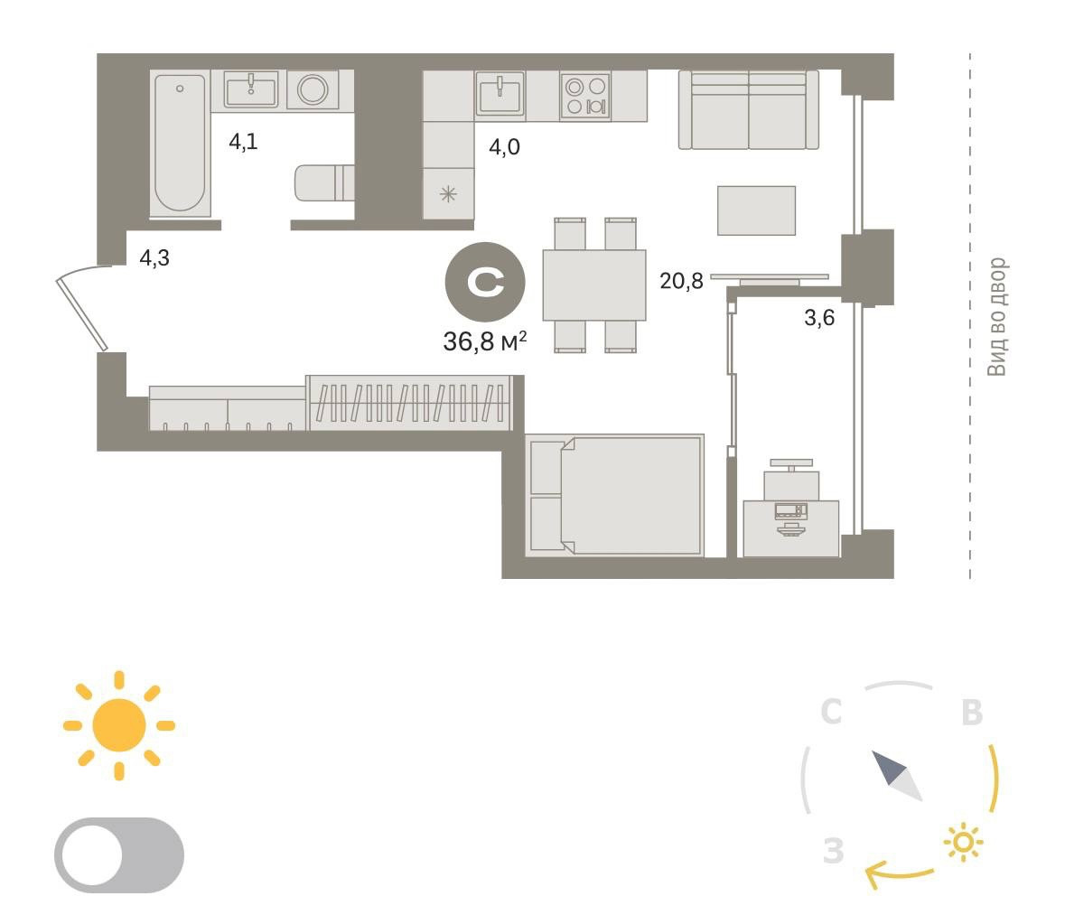 Площадь кухни 4 м2