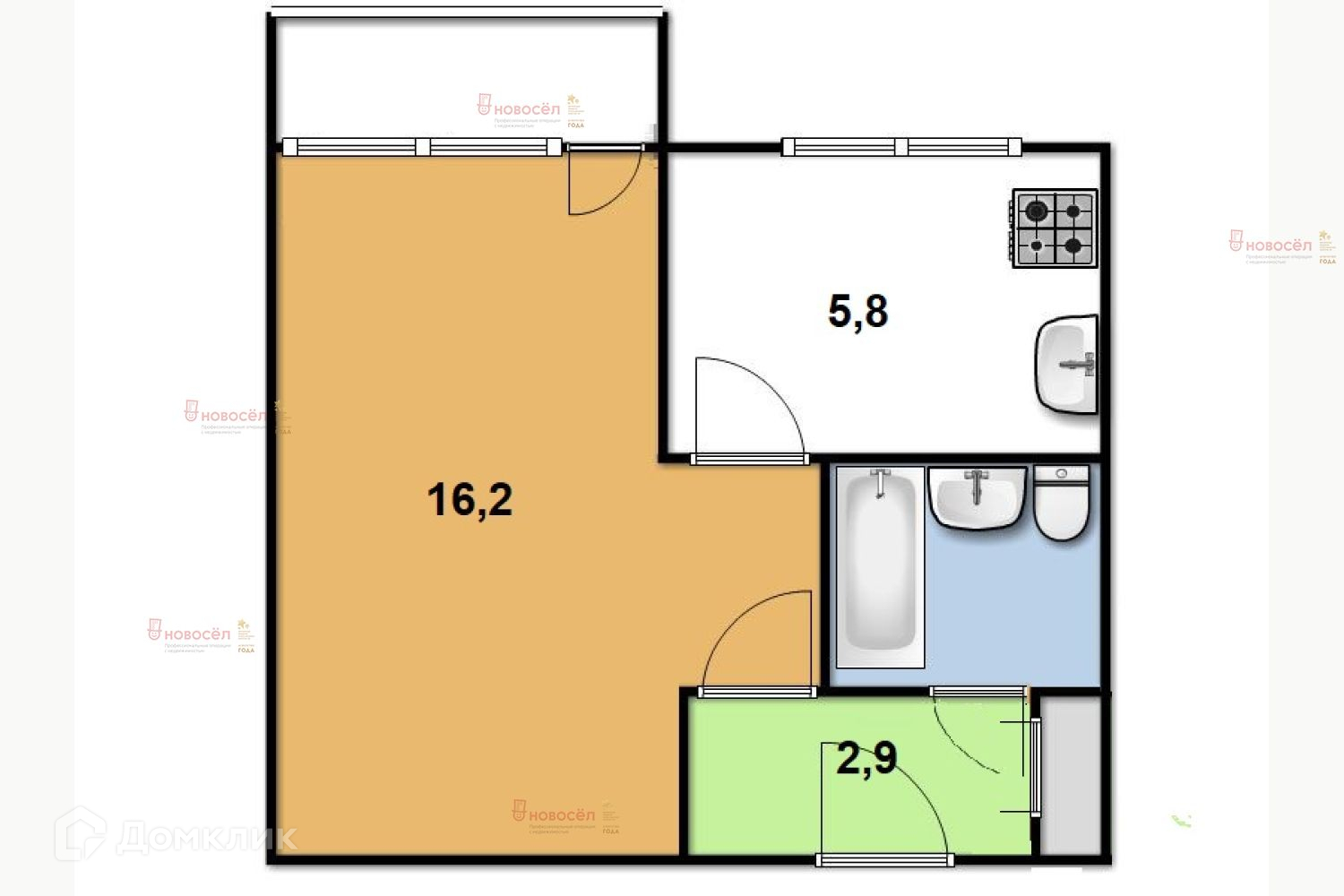 Жилая площадь 16.2 м2