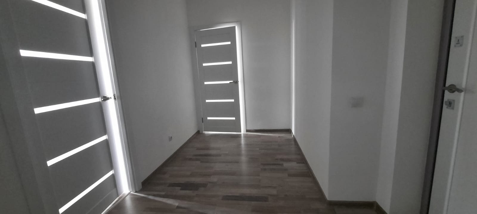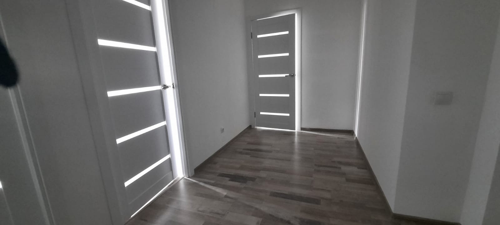 Отделка комфорт класса (ламинат приятной бежевой расцветки, качества 32 класса на кухне и всех комнатах, обои под покраску, двери белые мдф, с удобными эстетичными ручками. Сан. узел- стены кафель, пол- керамогранит, ниша под стиральную машину, удобный умывальник с тумбой и ванной закрытой экраном. В доме два лифта с сенсорным управлением рядом с квартирой и через 7 квартир ещё 2 лифта в другою сторону, В доме просторные эстетичные холлы, с отдельными колясочными.