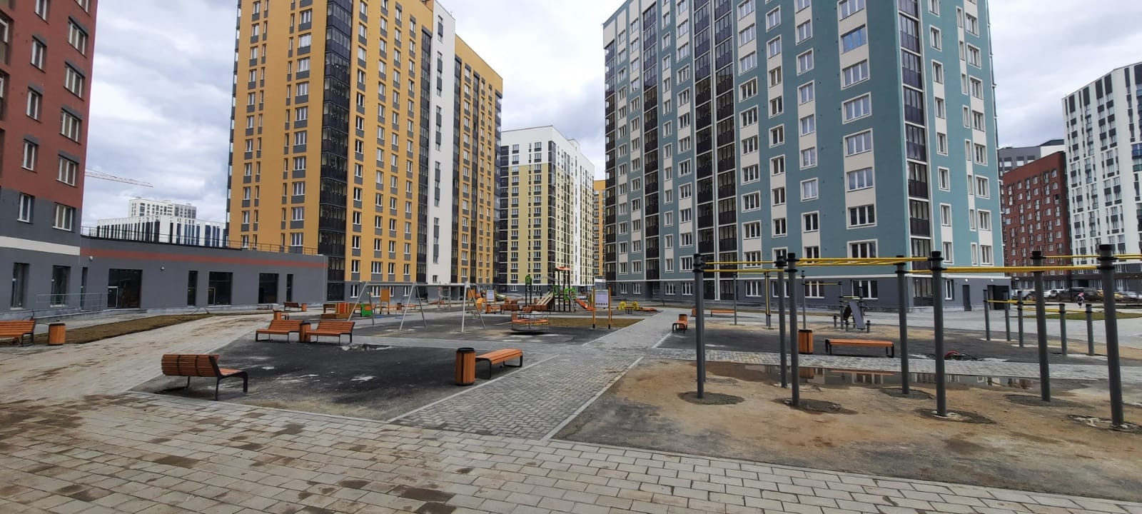 Внутренний двор, зелёная территория с высаженными деревьями, кустарниками и цветами, скамейками, детская площадка с каруселью и пр. В шаговой доступности соседнем дворе новая школа, которая осенью уже откроется. Взрослый собственник, без обременений. мат. капитал не использовался. Возможна помощь в оформлении ипотеки.