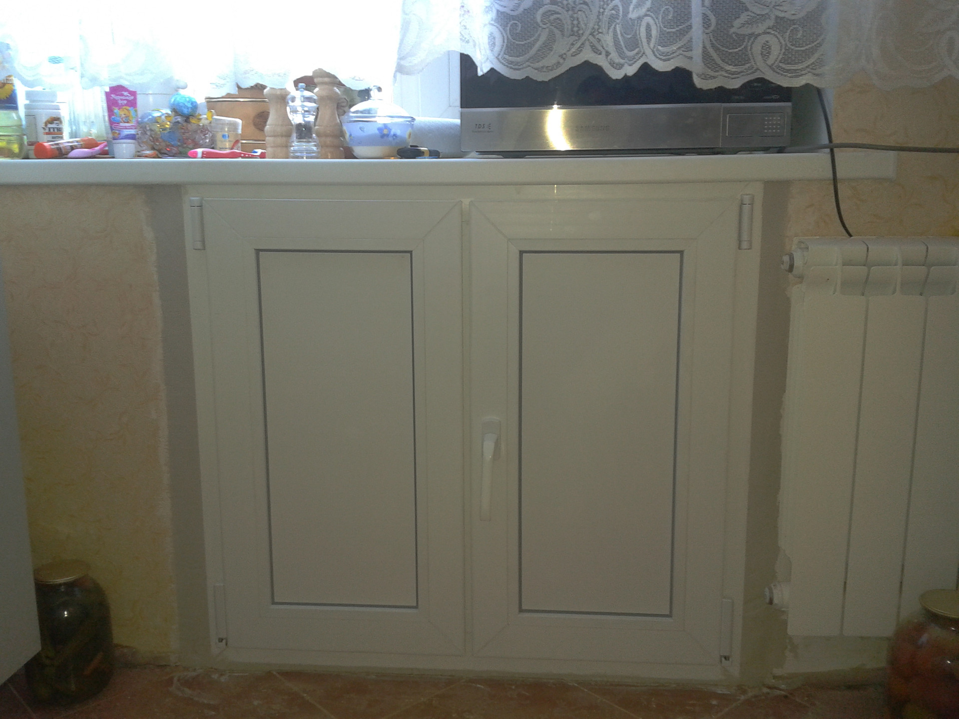 Электрический тёплый пол выложен керамогранитом на кухне и в ванной.