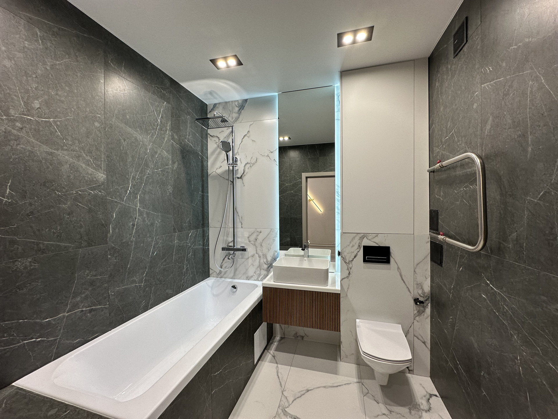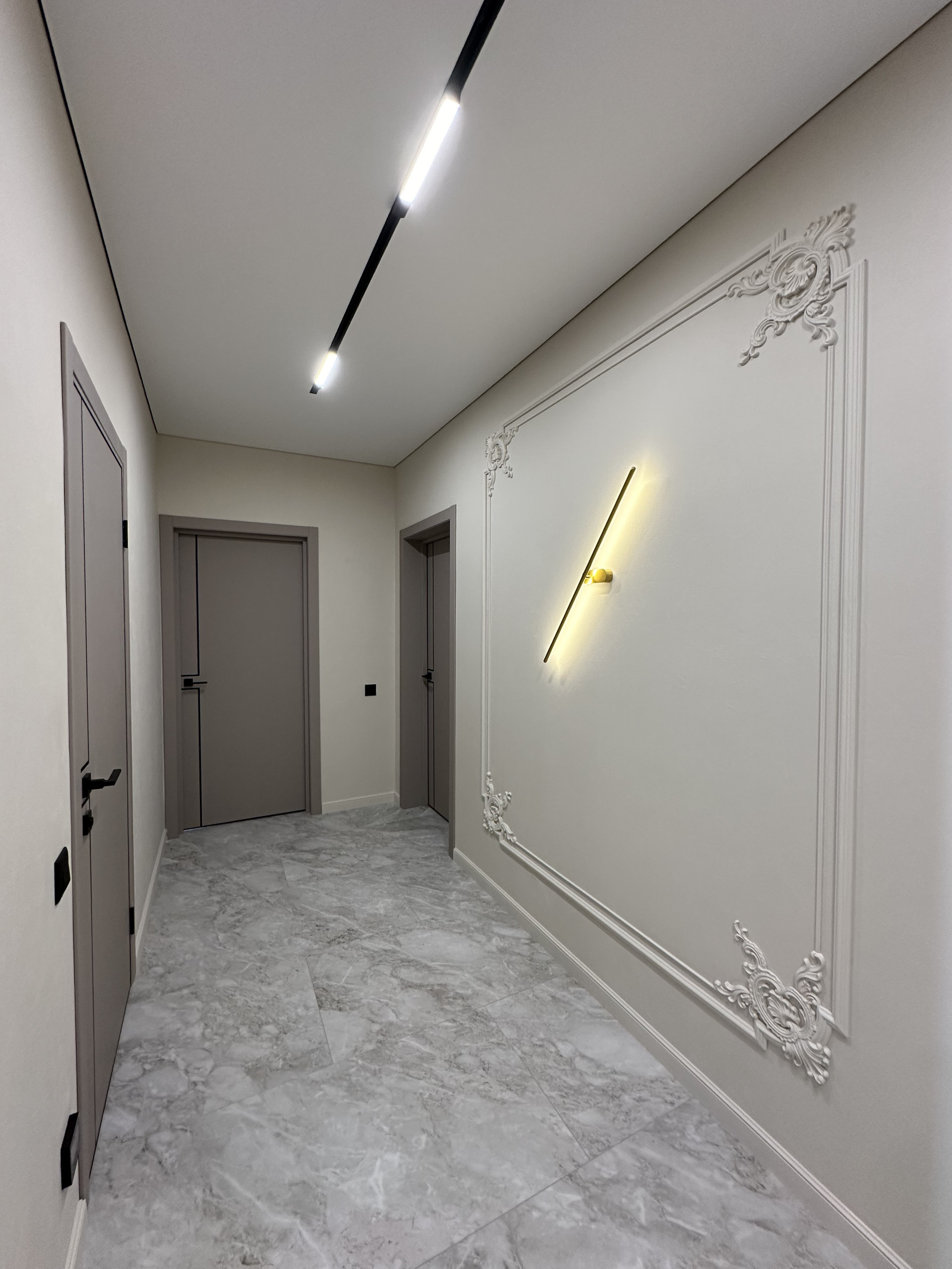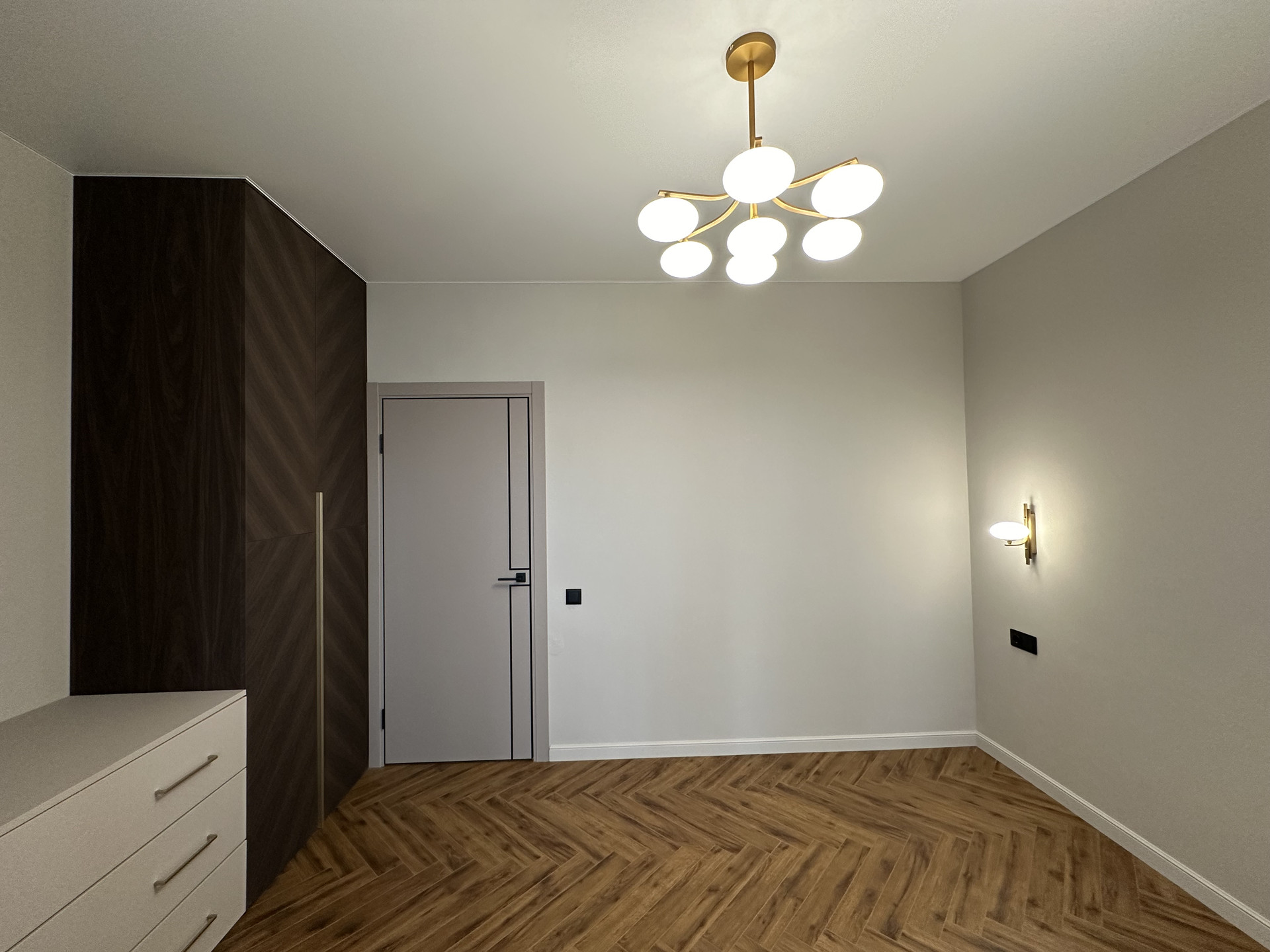 Квартира укомплектована всем необходимым для жизни: кухонный гарнитур со встроенной техникой: духовой шкаф, варочная поверхность, вытяжка, встроенный холодильник, посудомоечная машина 60см, диван, обеденная зона, телевизор, кондиционеры, шкафы в спальных и огромная система хранияния в коридоре, кровать с прикроватными тумбами. Все освещение немецкой марки Maytoni.