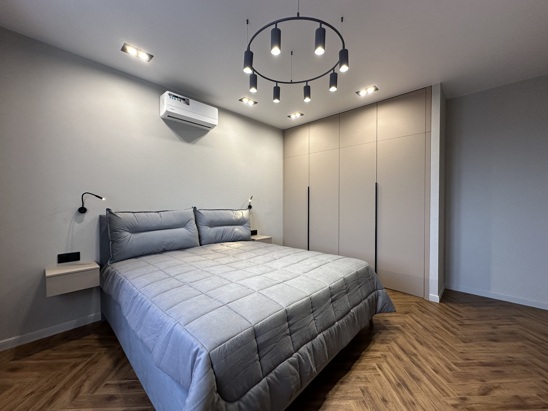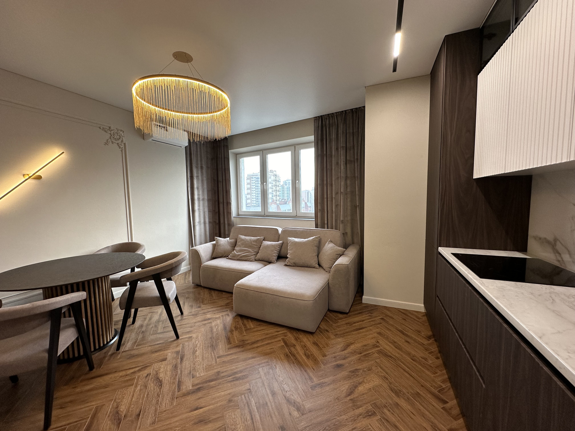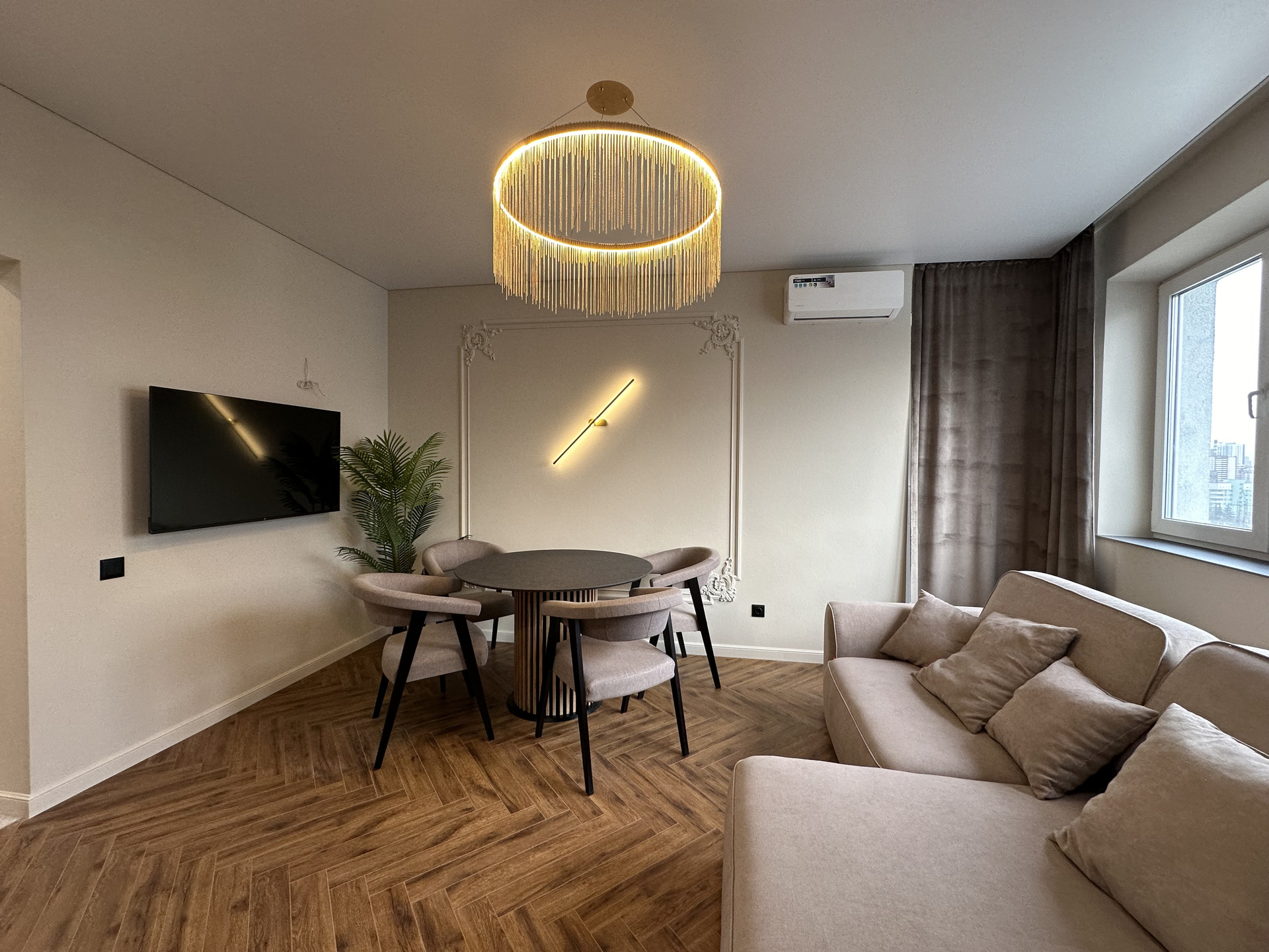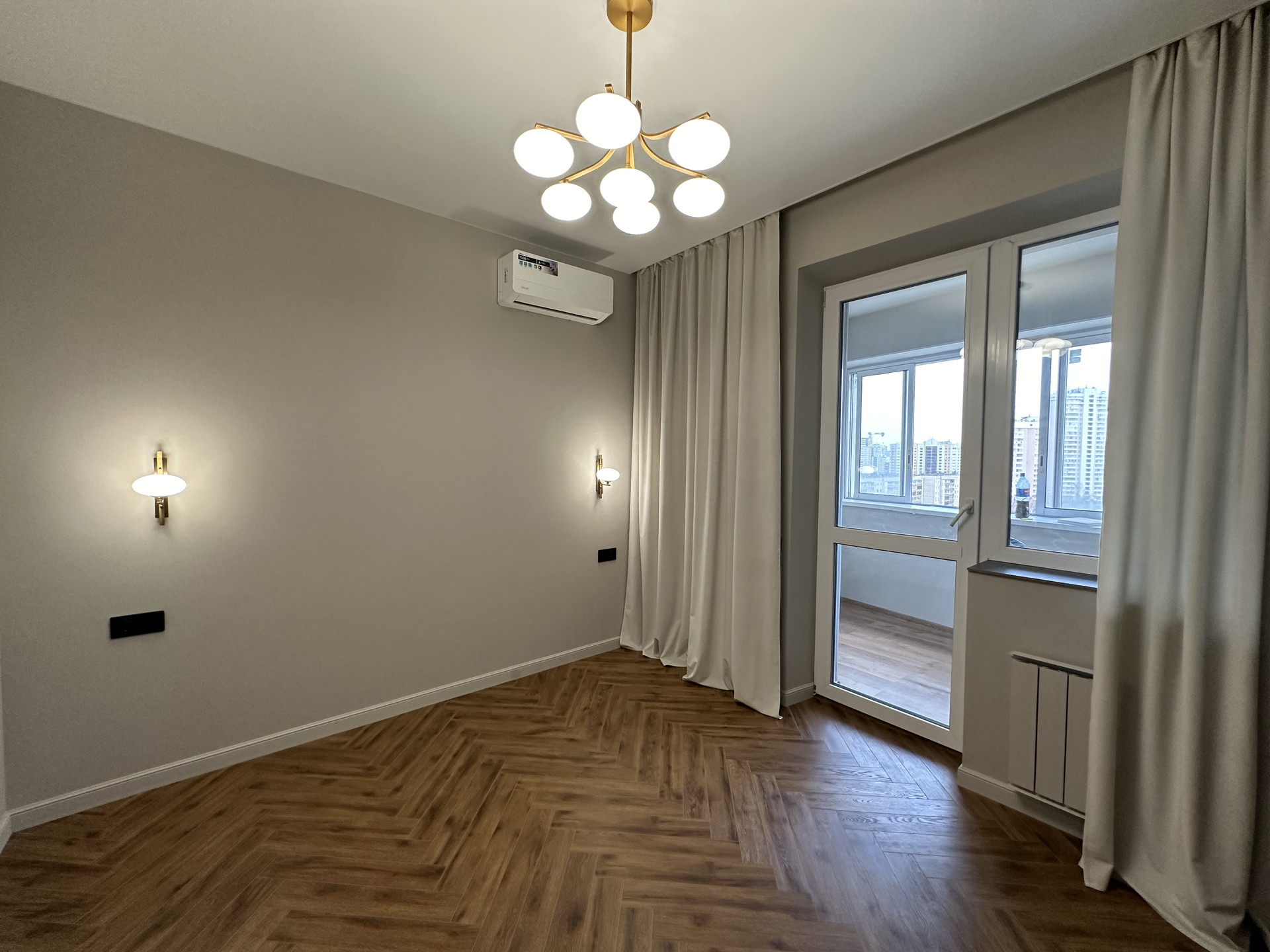 Окна квартиры выходят на 2 стороны: восток и юг. В квартире всегда много солнечного света, установлены многофункциональные кондиционеры для комфортного проживания.
