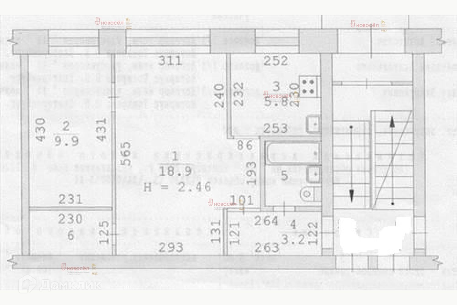 Общая площадь 43 м2