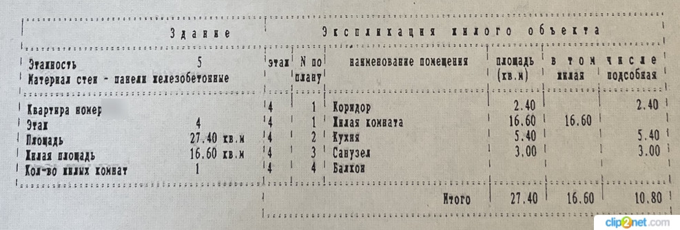 Общая площадь 27.4 м2