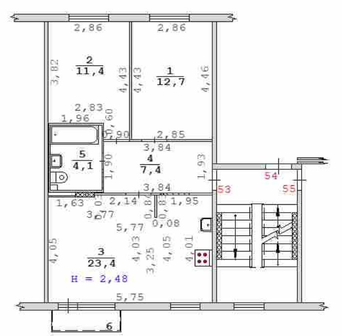 Высота потолков 2.5 м