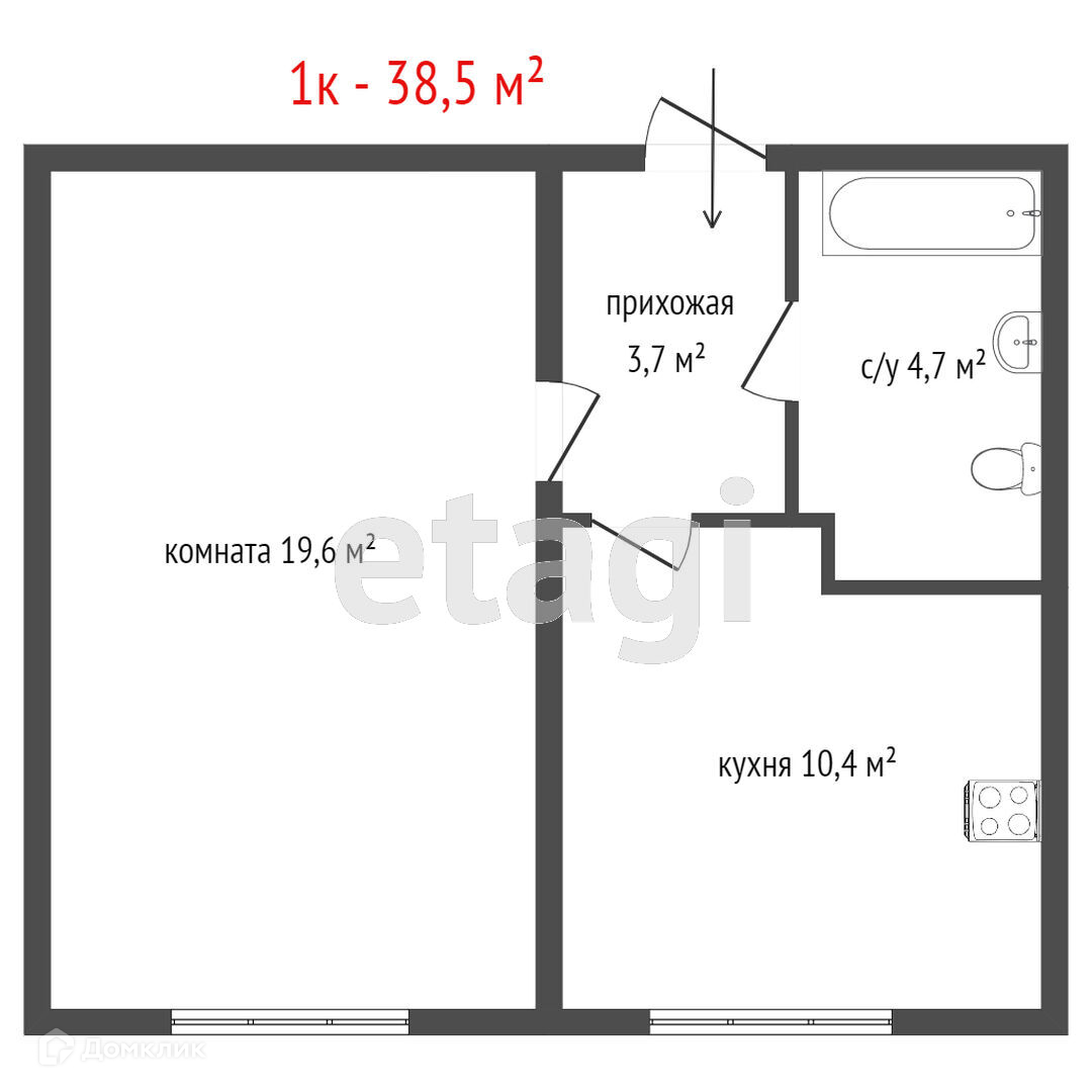 Общая площадь 38.5 м2