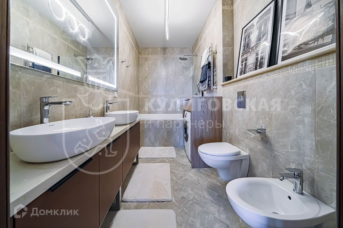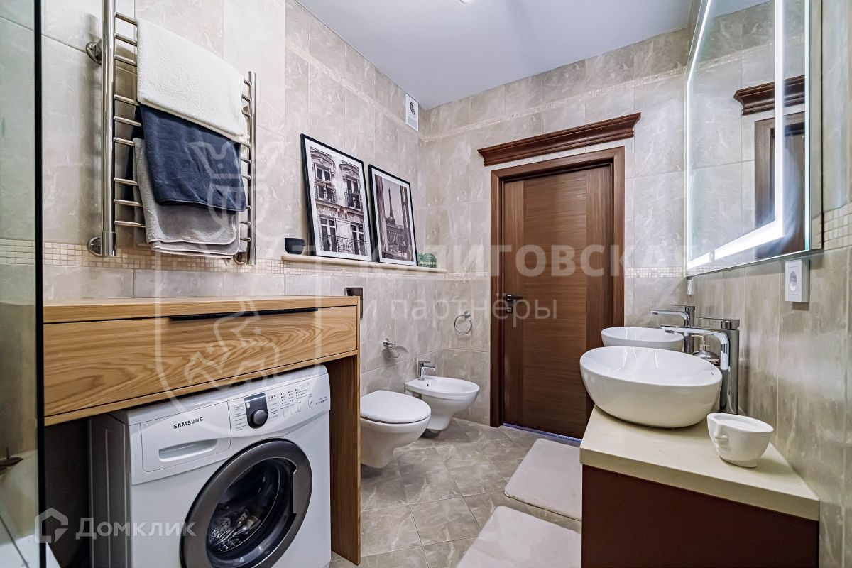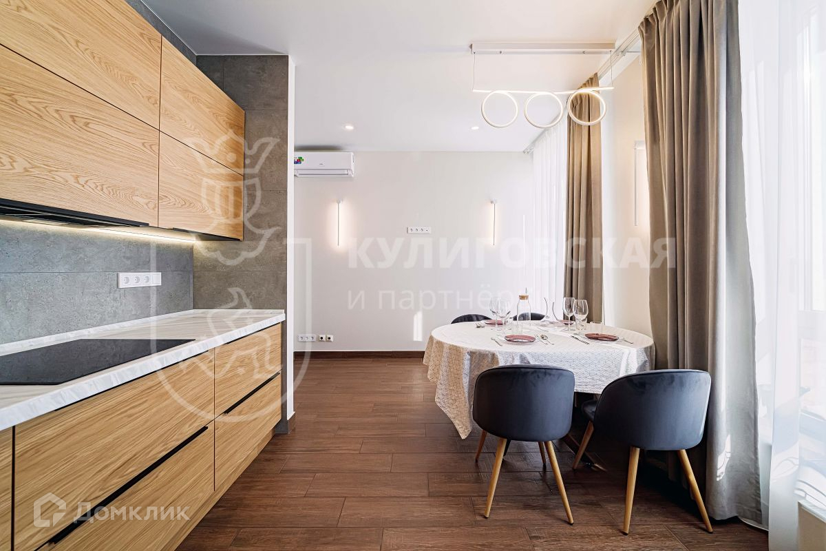 Выполнен свежий и качественный ремонт из дорогих материалов. На полу итальянская термостабилизированная древесина, подоконники из натурального гранита. Вся мебель и межкомнатные двери сделаны из массива дерева. В санузлах керамическая плитка Versace. В комнатах установлены кондиционеры Daikin.