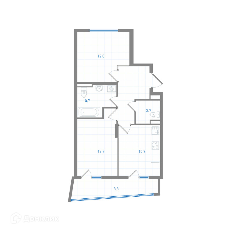 Общая площадь 56.9 м2
