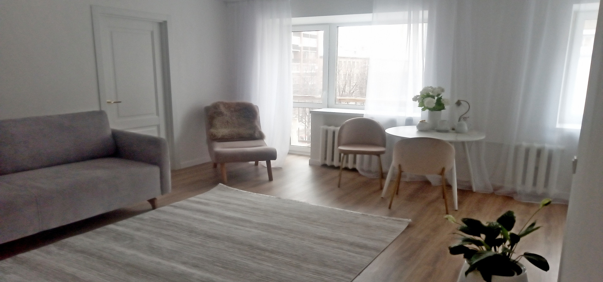 Заменены окна, входная и межкомнатные двери, вся проводка новая , выровнены и оштукатурены стены,