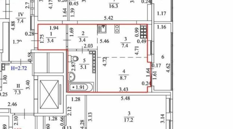 Площадь кухни 7.4 м2