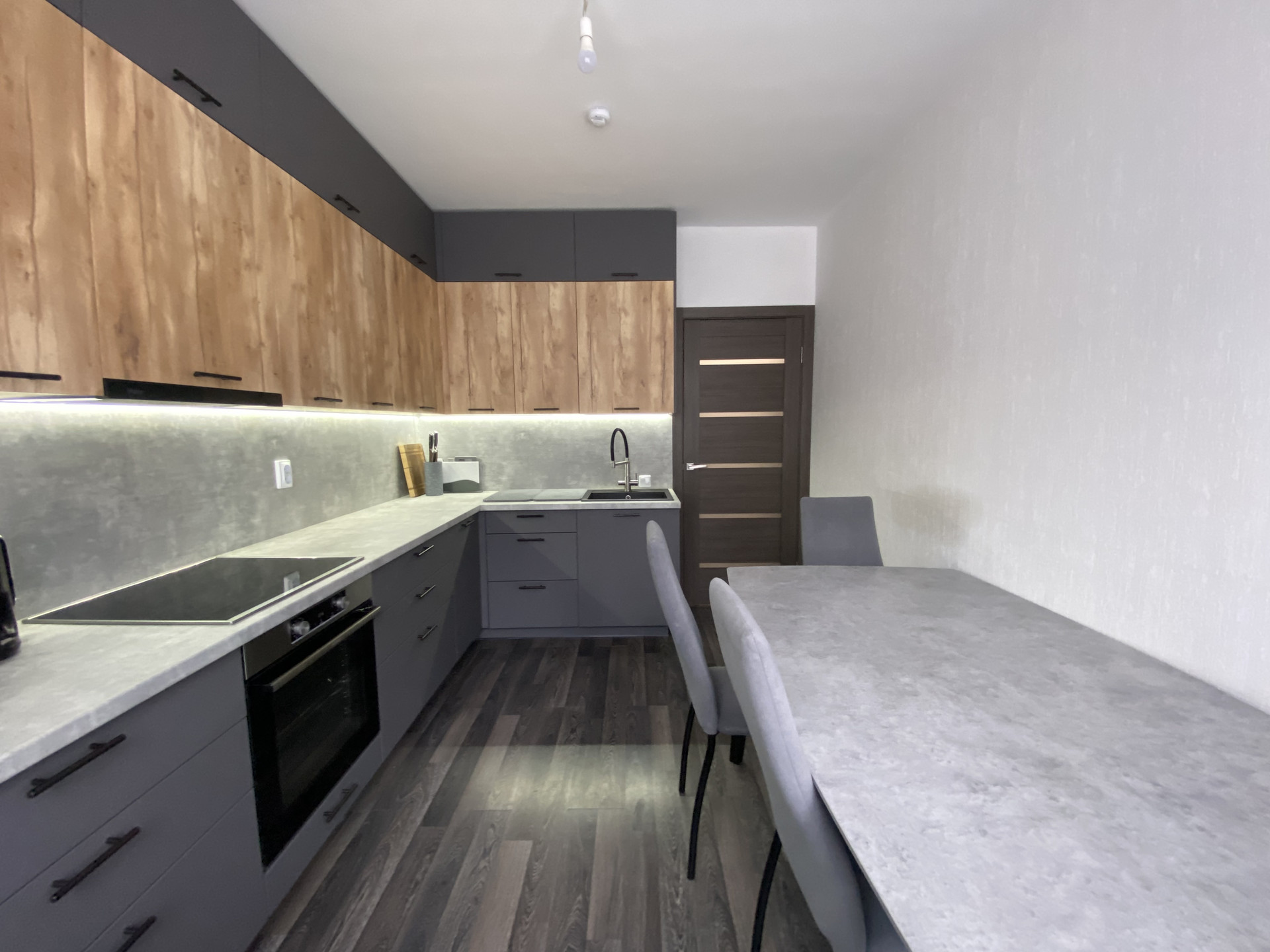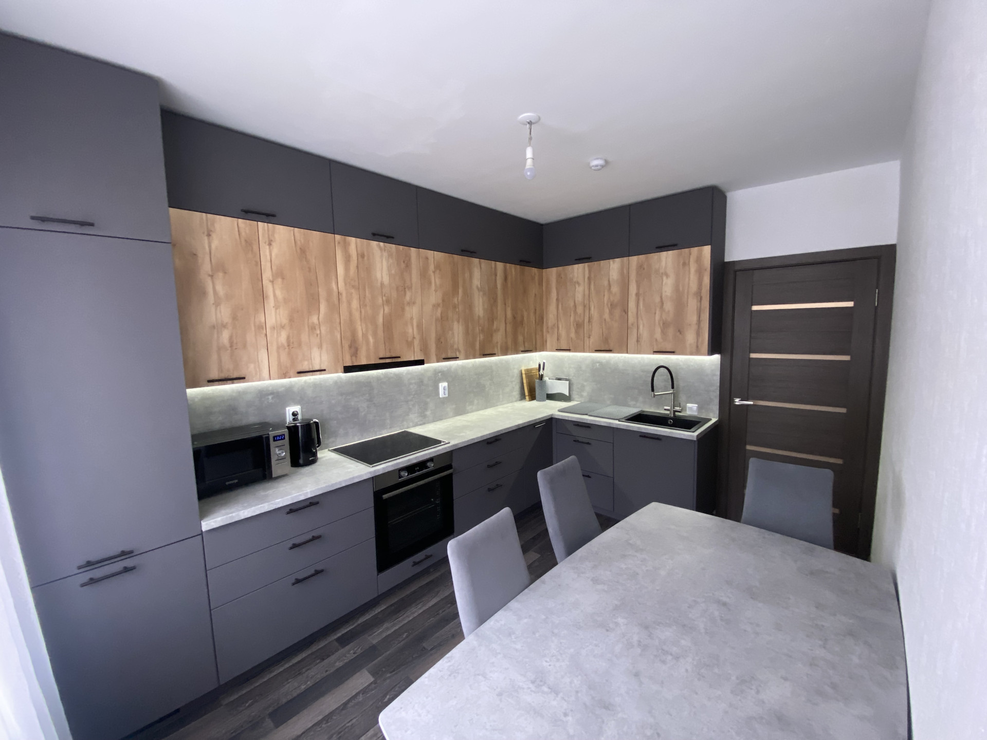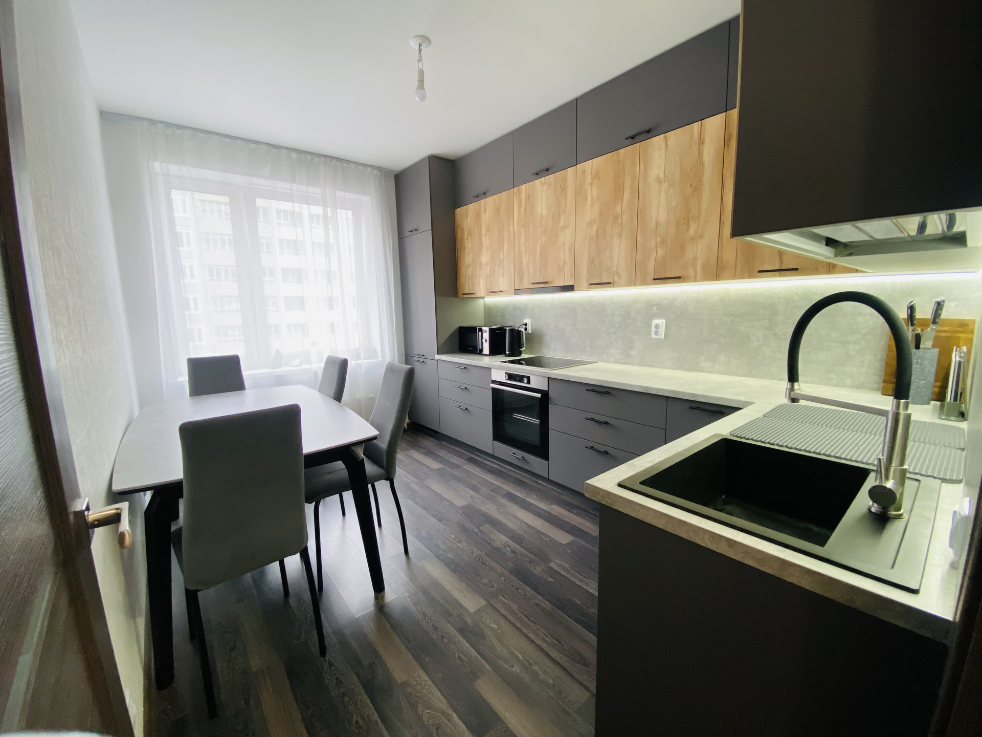 - просторная кухня - кухонный гарнитур фабрики "Мария" со встроенной бытовой техникой входят в стоимость квартиры.