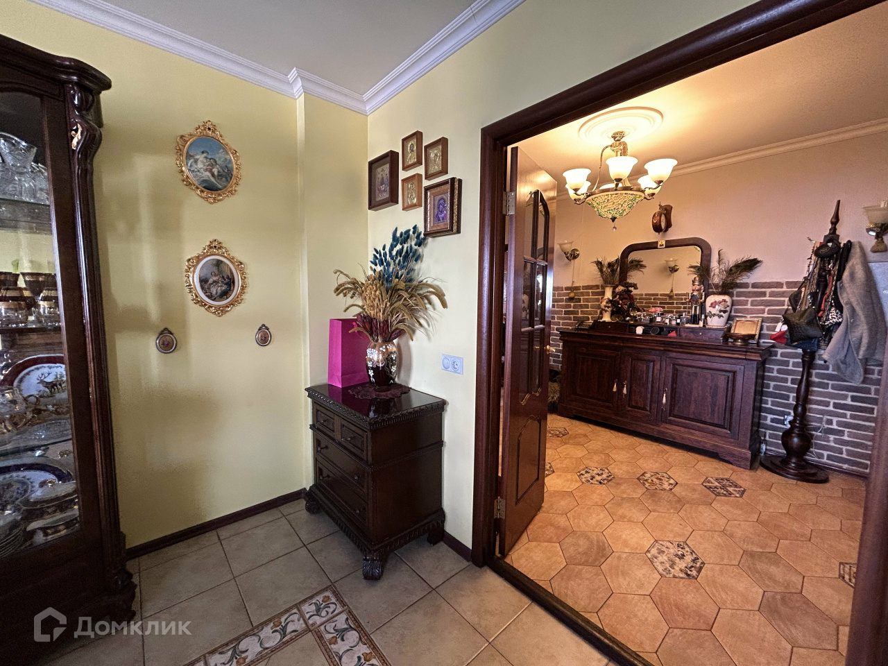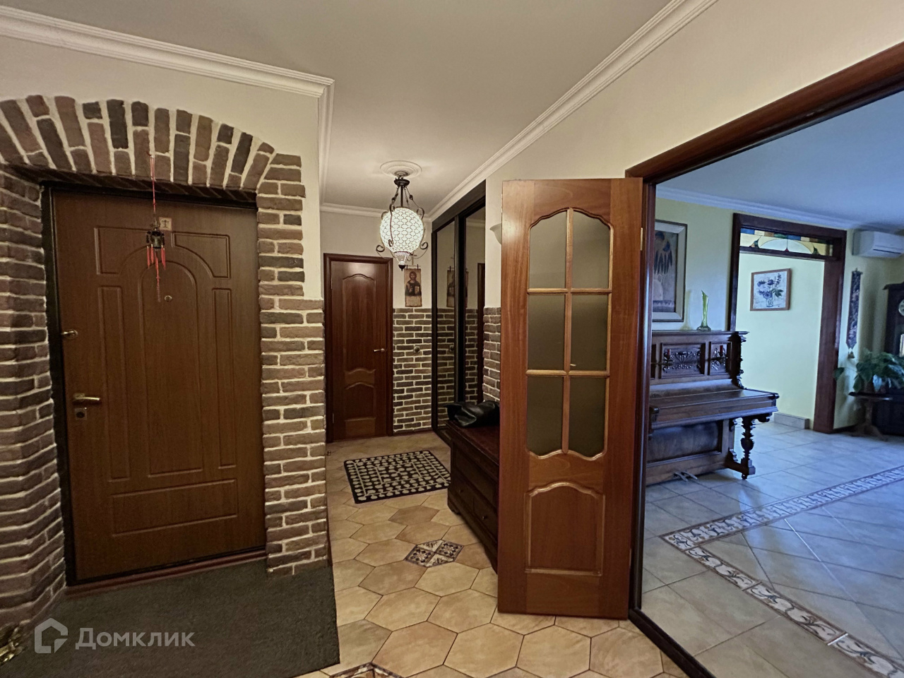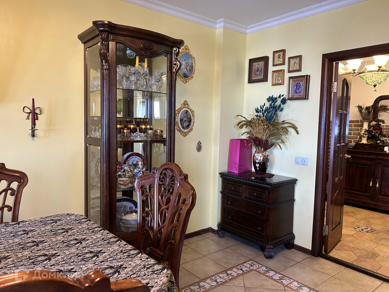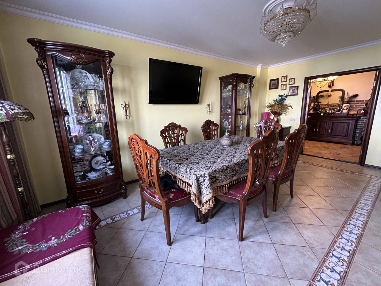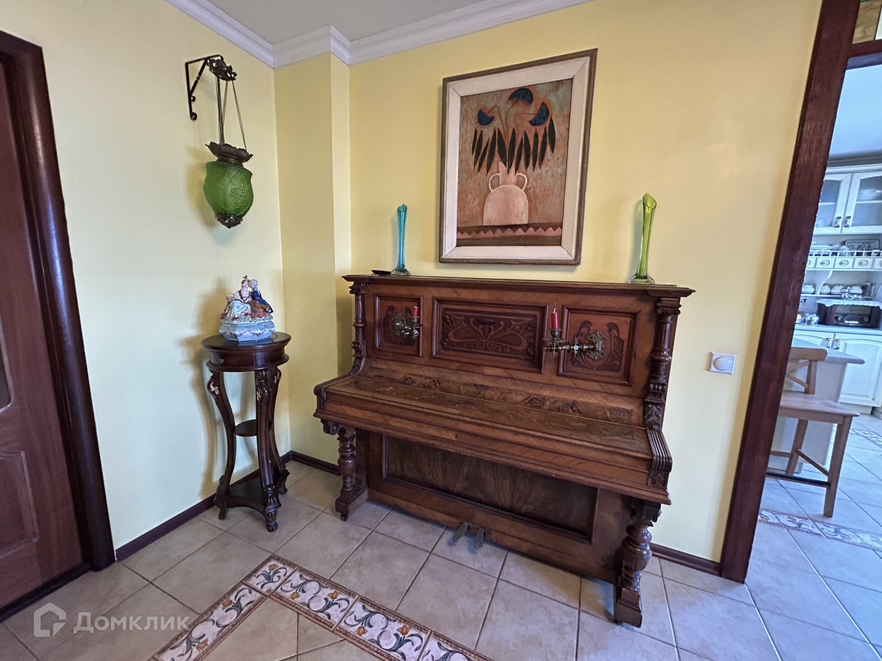 В столовой есть все для гостеприимного приема: большой стол, красивые резные стулья, пианино, кондиционер.