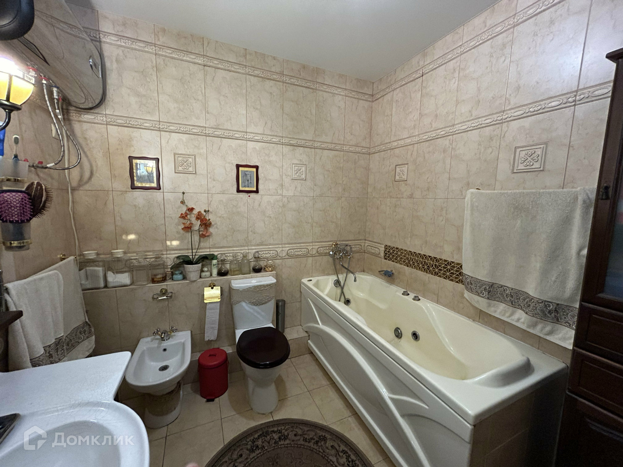 В ванной комнате трубы поменяны на медные, заменены стояки. Счетчики с телеметрией. Есть бойлер