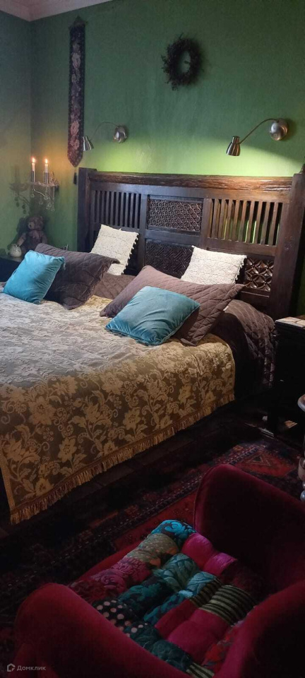 Спальня -15 м2 (выход на застекленную лоджию) На стенах комнаты штукатурка премиального качества. Большая резная кровать натуральный дуб, туалетный столик, другая мебель и элементы декора гармонично сочетаются друг с другом. Шумоизоляция