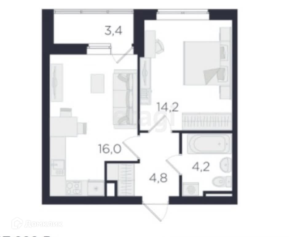 Общая площадь 40.9 м2