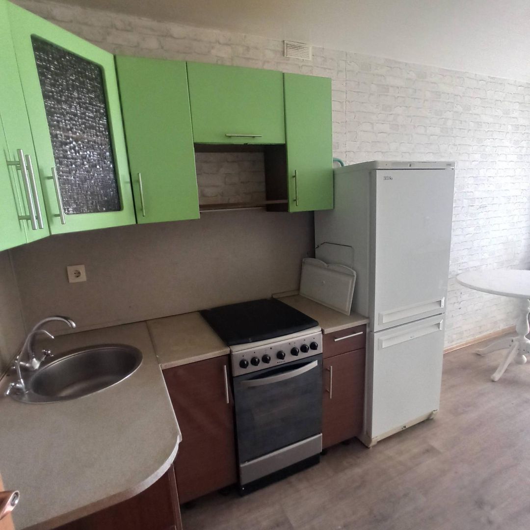 В квартире сделан хороший ремонт, свежая стяжка пола, натяжные потолки. Кухня с бытовой техникой и холодильником в подарок новому хозяину.  Из кухни выход на небольшую застекленную лоджию.