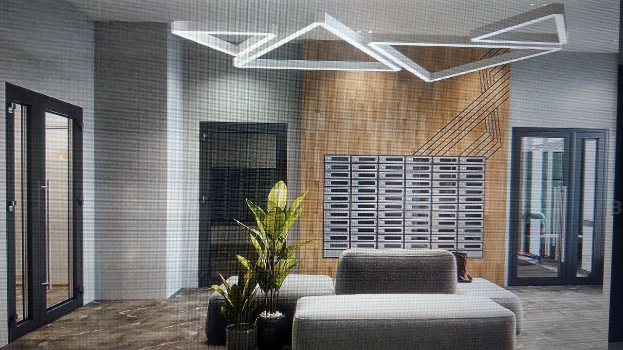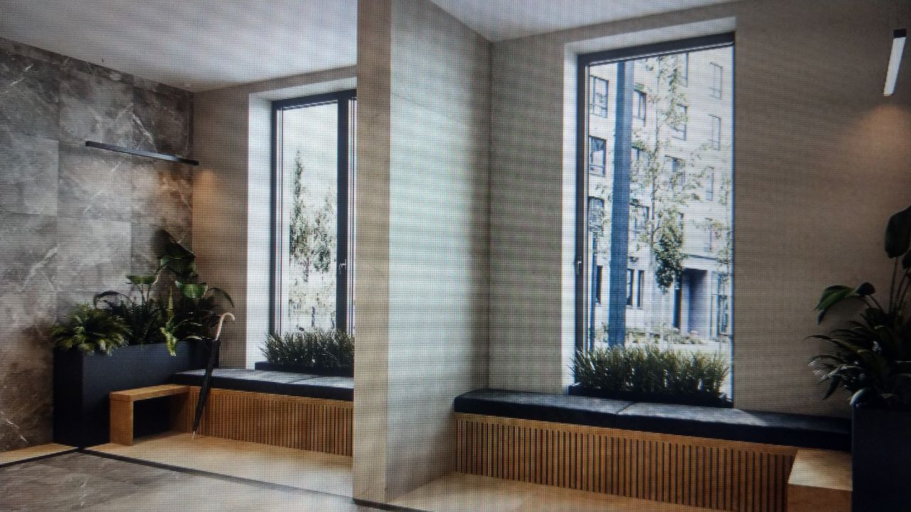 Отделка: cтяжка на полу, подготовка под финишное покрытие, выровненные, оштукатуренные и прогрунтованные стены, сантехника в санузле, металлическая входная сейф-дверь. Мягкая зона ресепшен с консьерж.