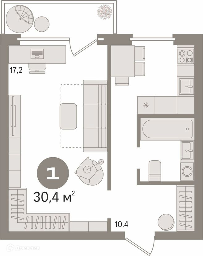 Общая площадь 30.4 м2