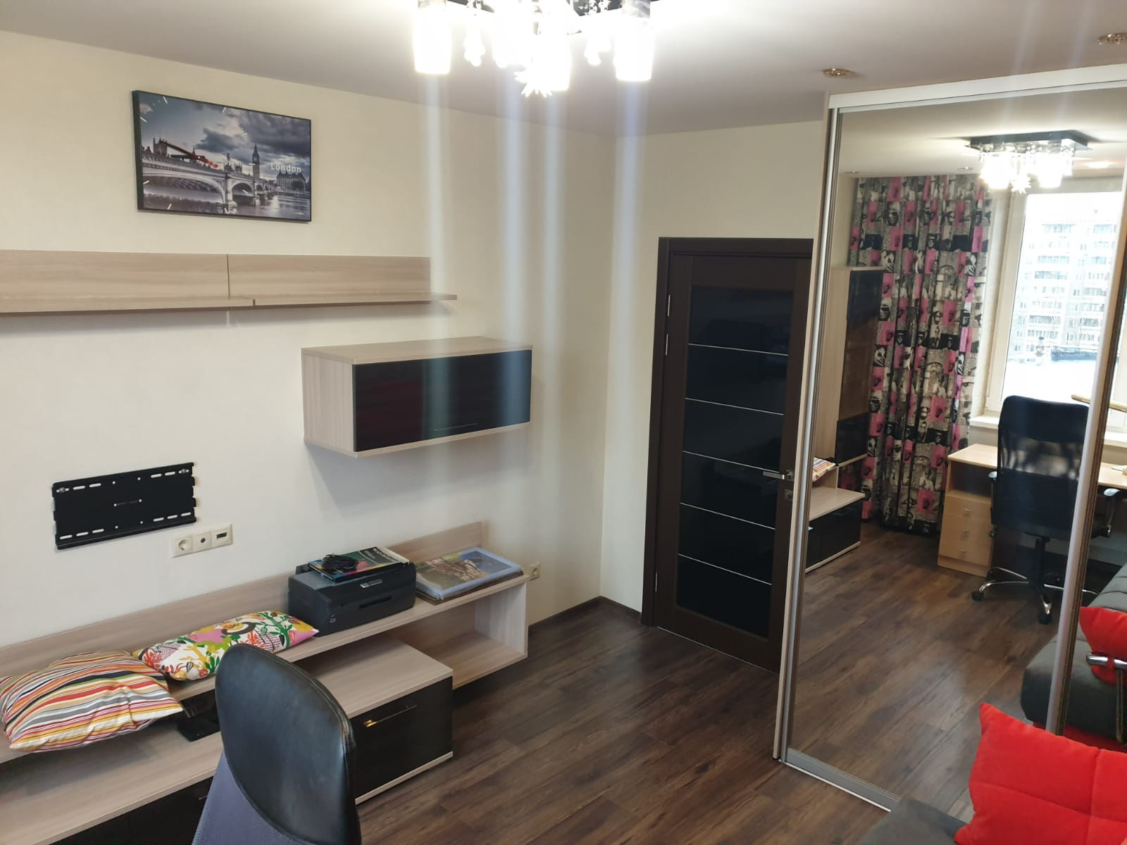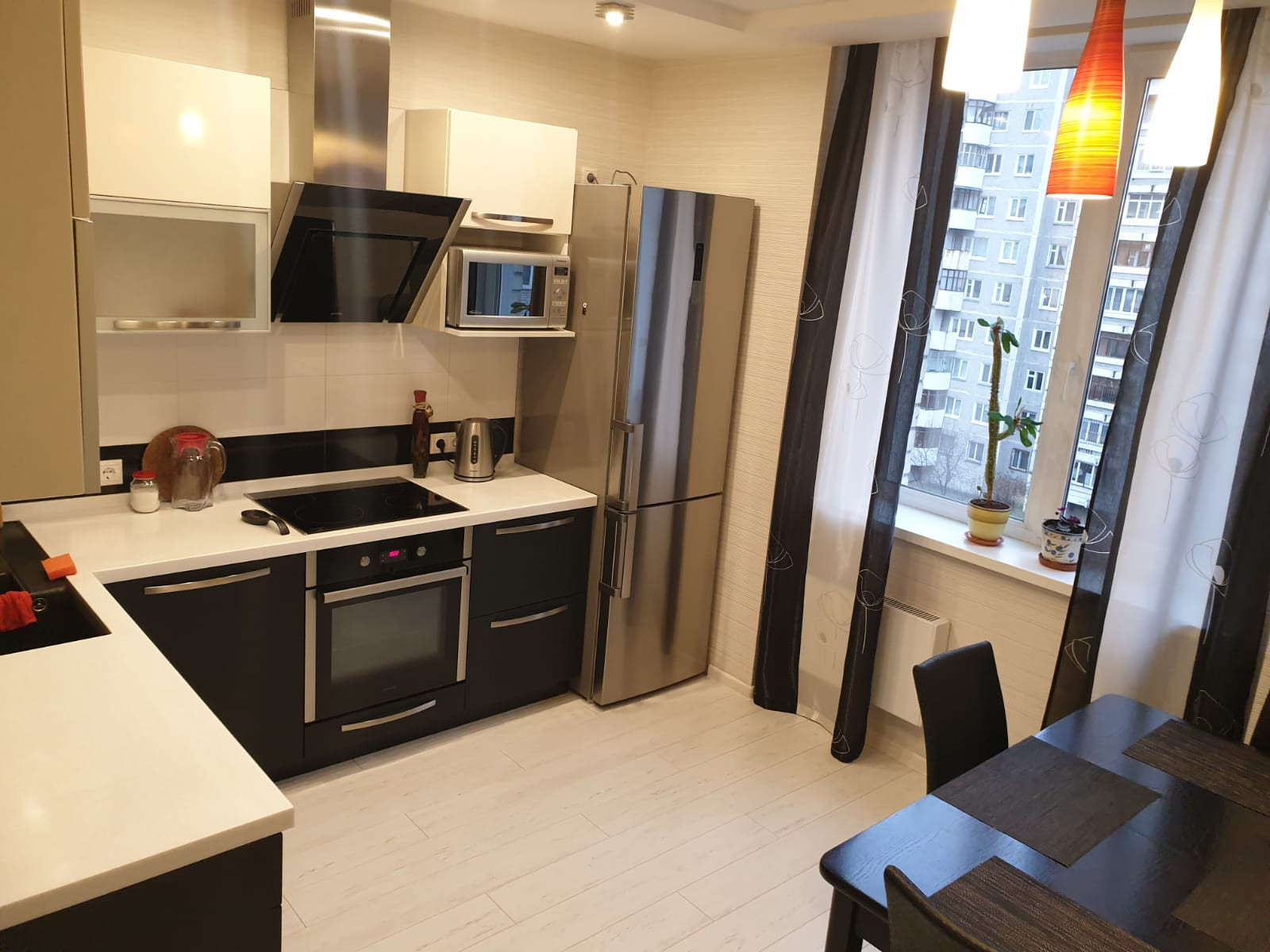Кухонный гарнитур, встроенная варочная поверхность, дух. шкаф, вытяжка, мебель в детской комнате входят в стоимость квартиры.