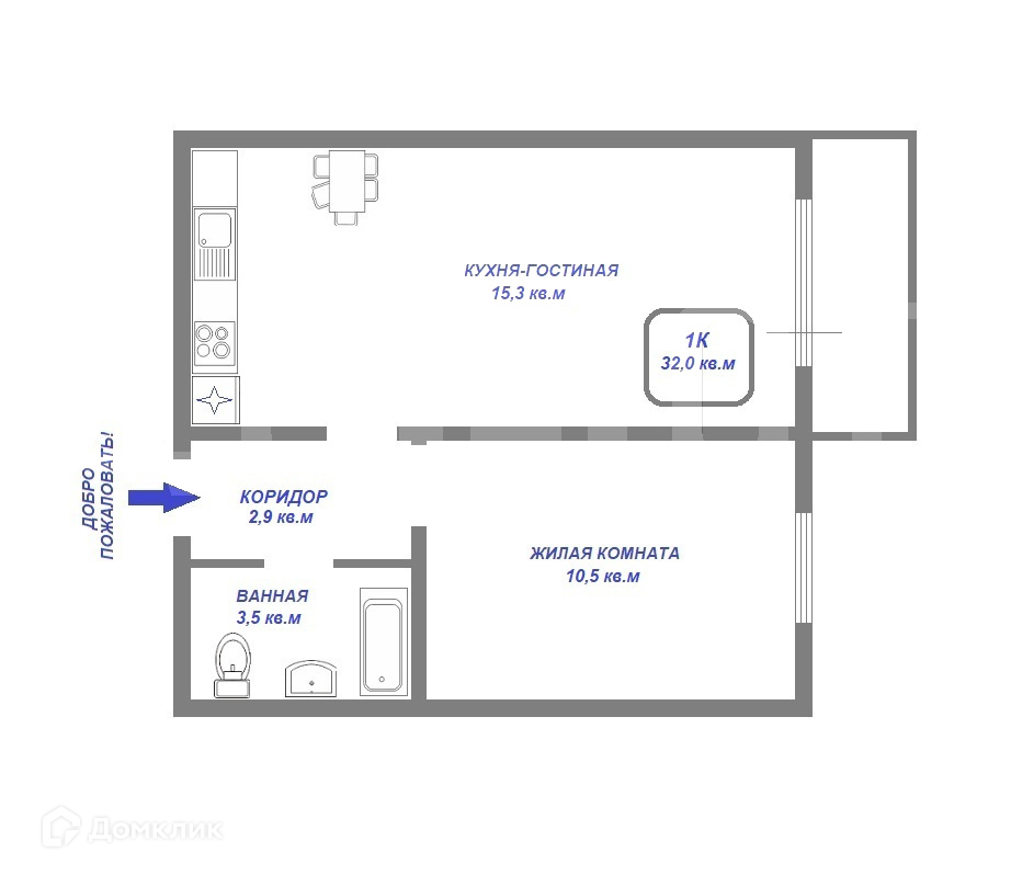 Общая площадь 32 м2