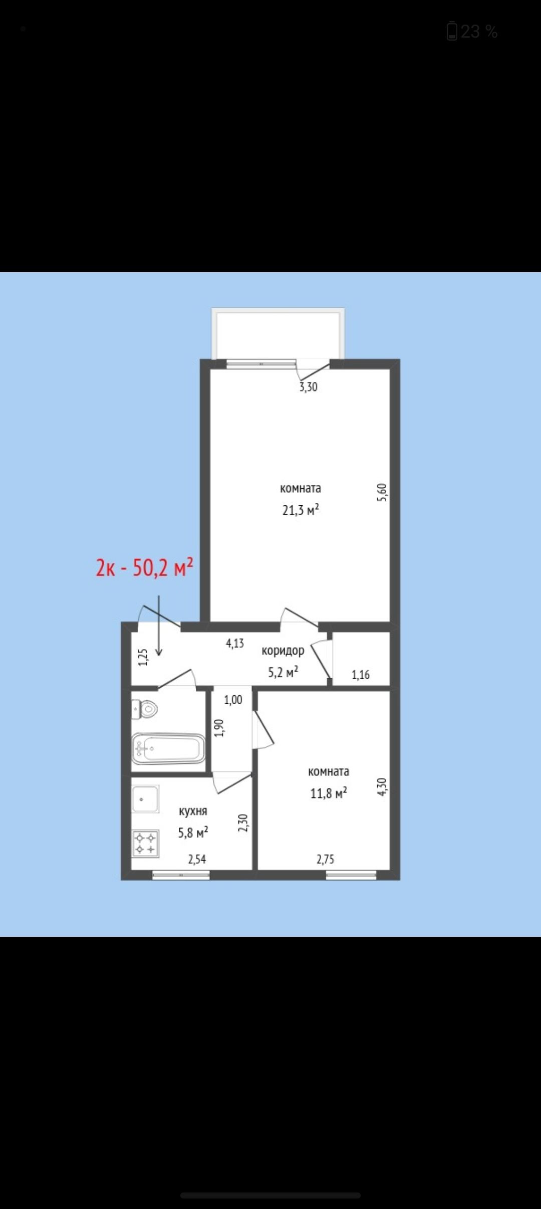 Общая площадь 50.2 м2