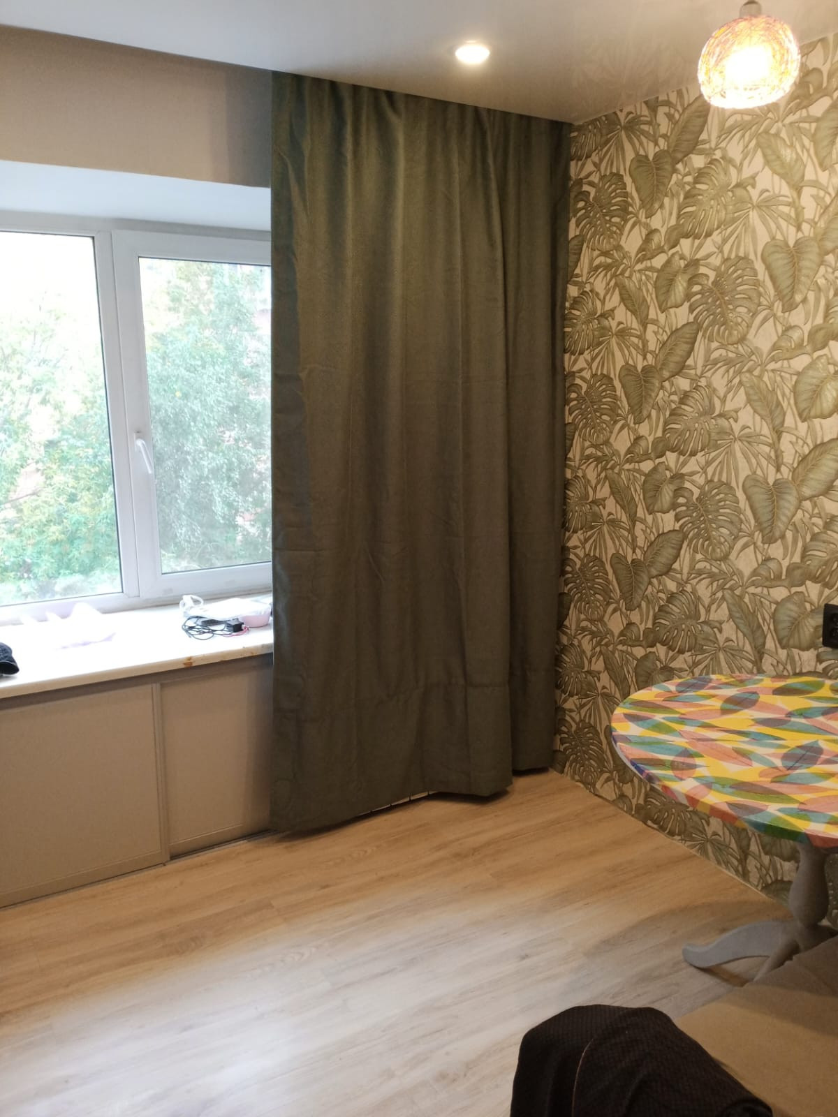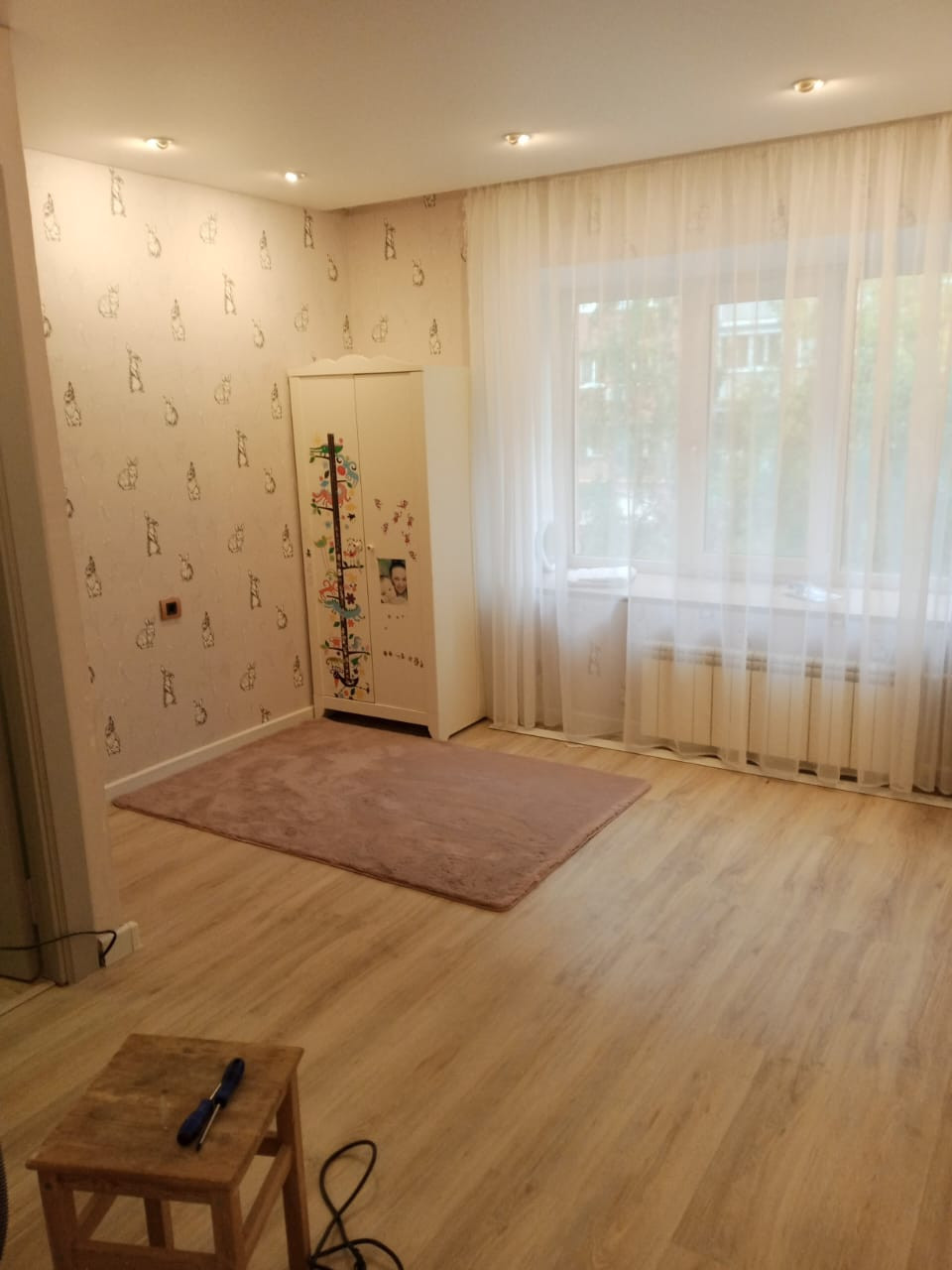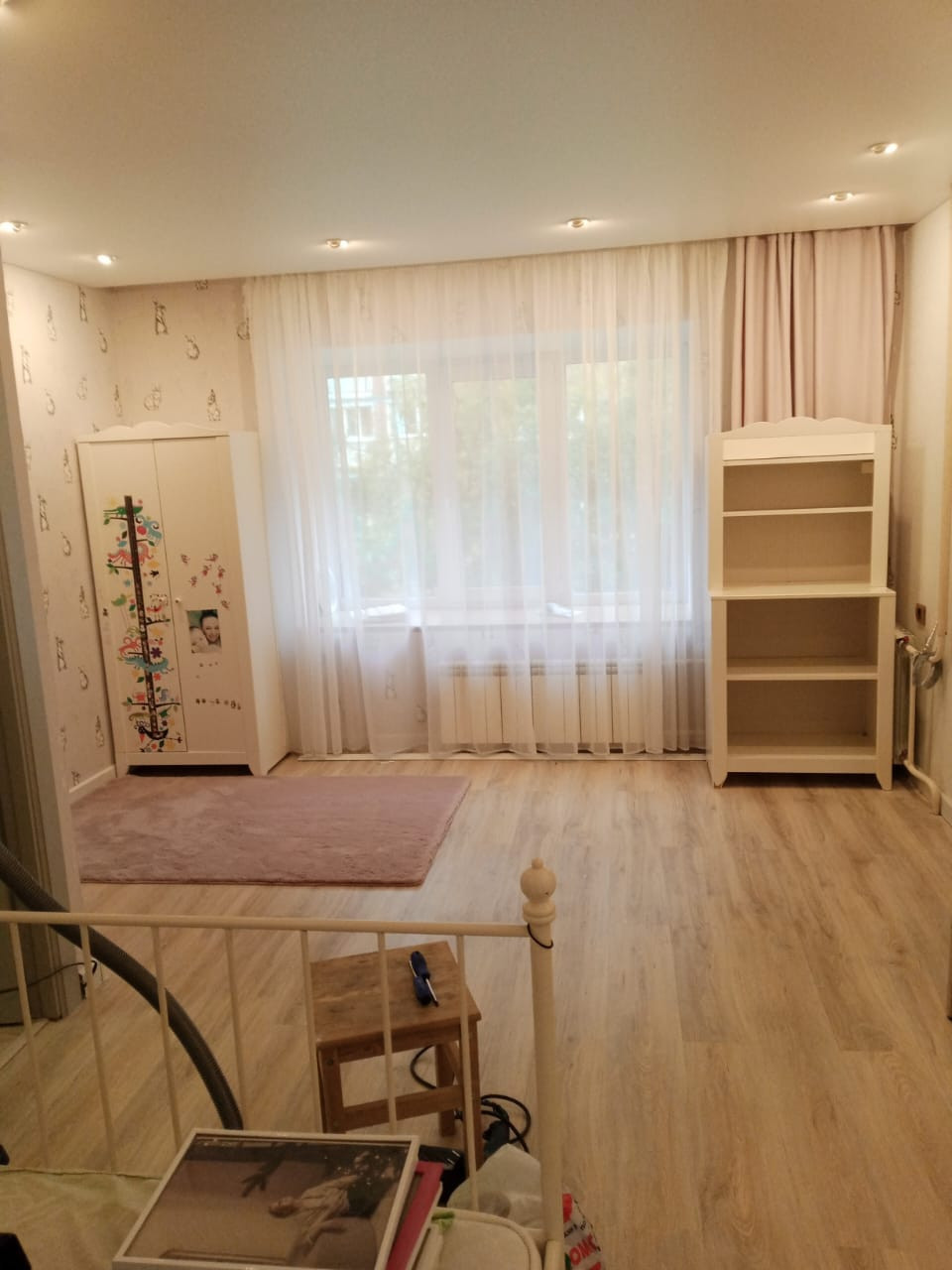 На полу в квартире ламинат,в су SPC плитка ,на стенах обои и декоративная штукатурка,потолки везде натяжные со встроенными светильникам по периметру. Большая 7м2 лоджия остеклена и утеплена 2023 году. Закрытый этаж с дополнительным местом для хранения санок, велосипедов и тд.