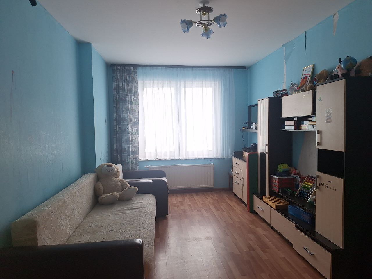 В квартире ремонт еще от застройщика, требуется косметический ремонт. В квартире останутся: 2 встроенных шкафа-купе, в коридоре и детской комнате, кухонный гарнитур, шкаф на балконе. Детские доли выделены, документы готовы к сделке. Возможна ипотека. Собственник.