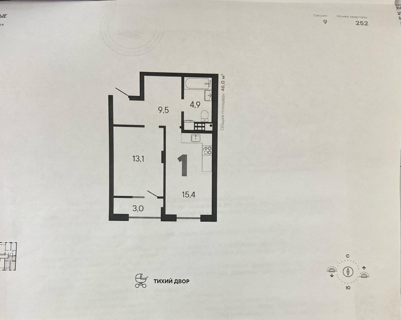 Общая площадь 46 м2