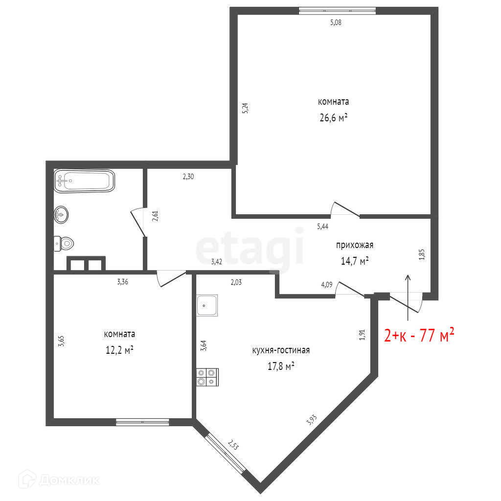 Общая площадь 77 м2