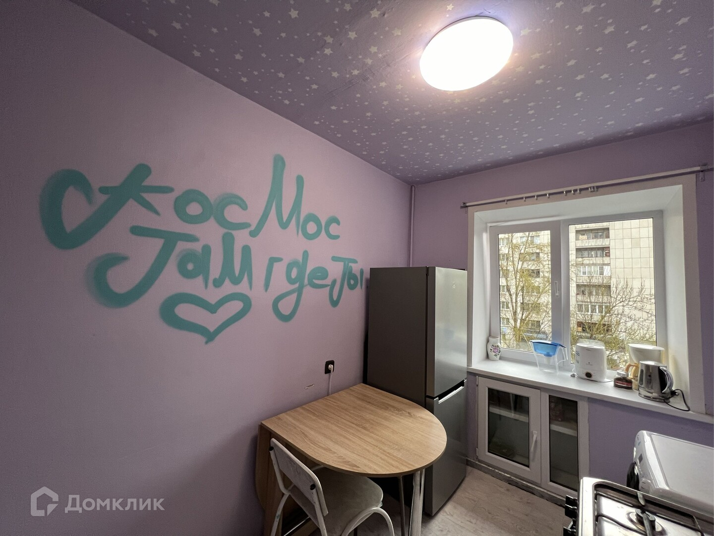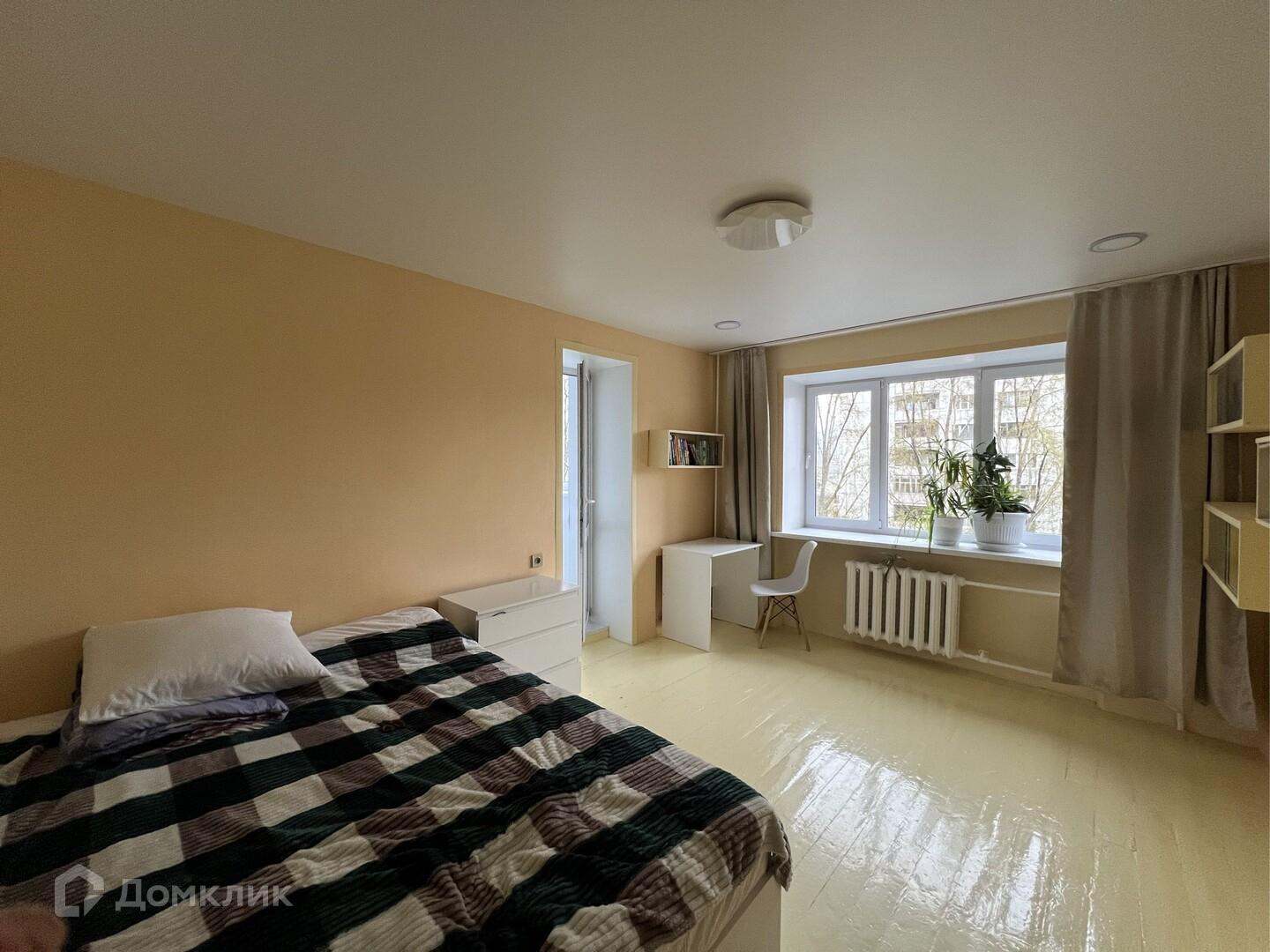 Квартира светлая и уютная, с просторной жилой комнатой и остеклённым балконом. Окна выходят во двор.