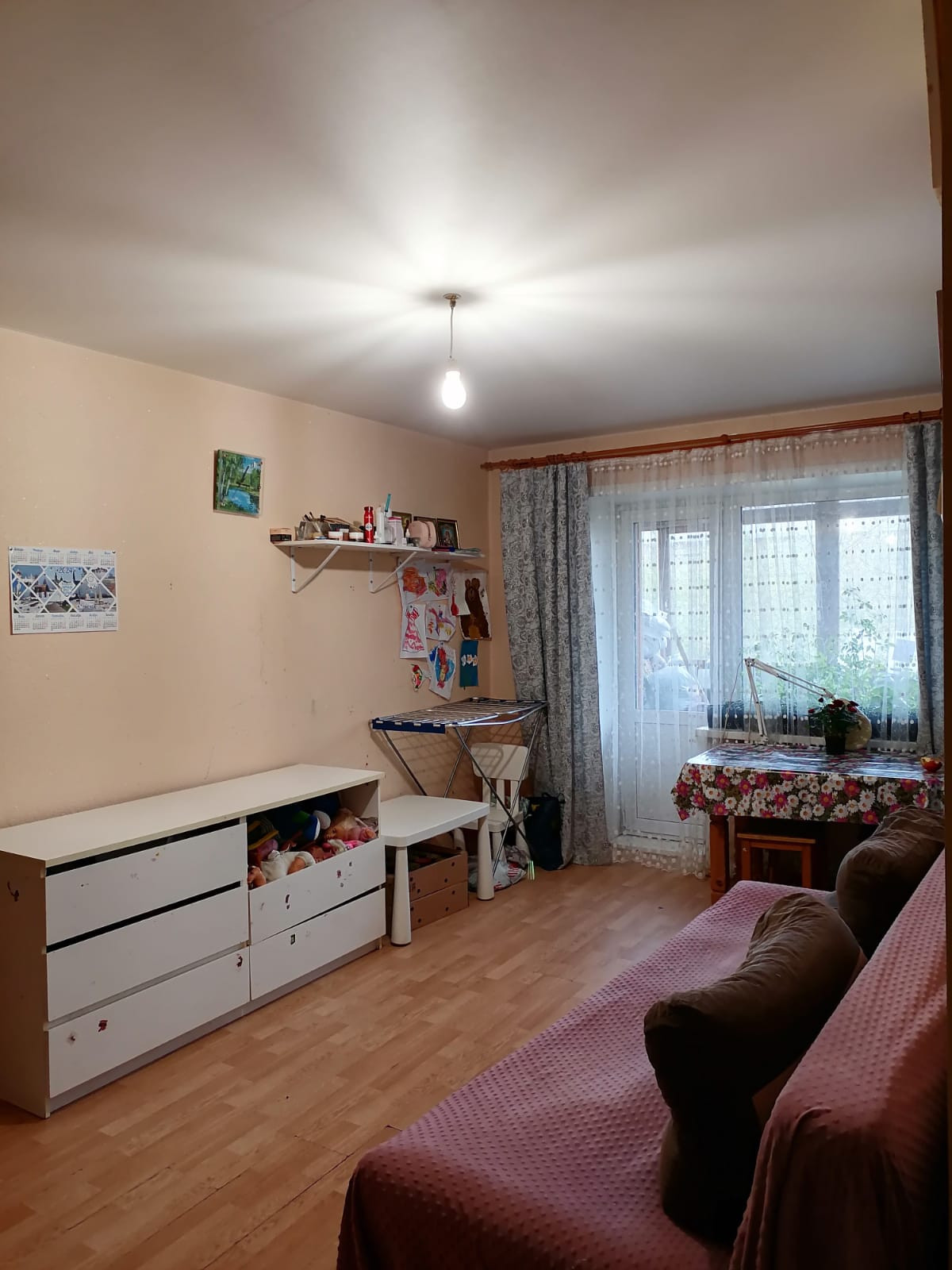 В квартире выполнена согласованная перепланировка  объединена кухня и гостиная,  установлены счетчики ГВС, ХВС. Санузел совмещённый.