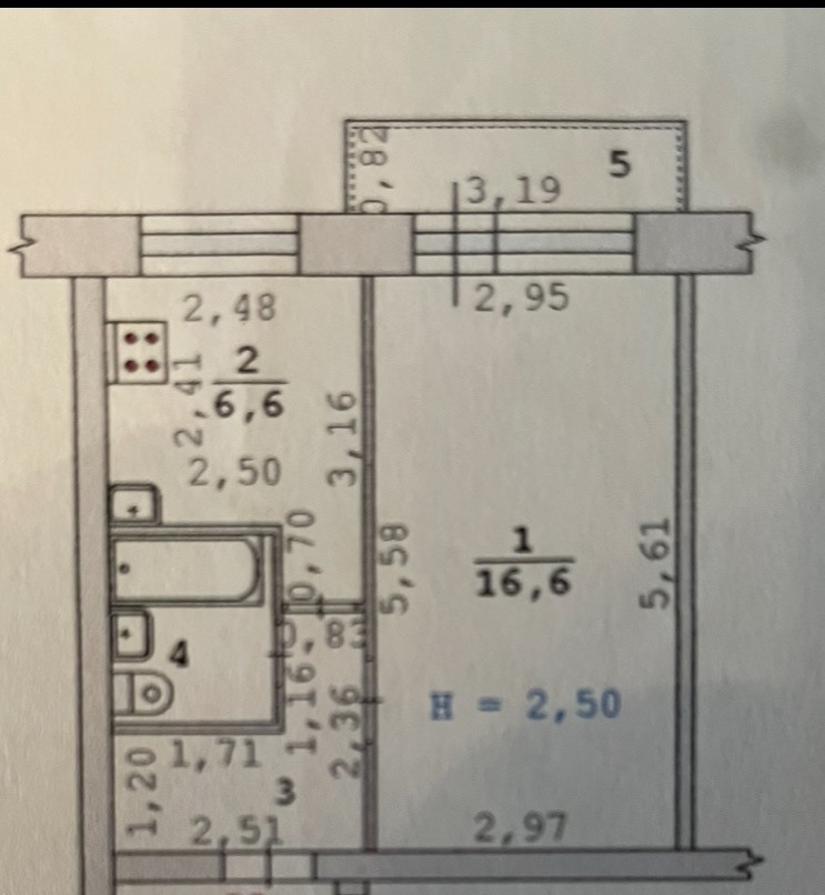 Площадь кухни 6.6 м2