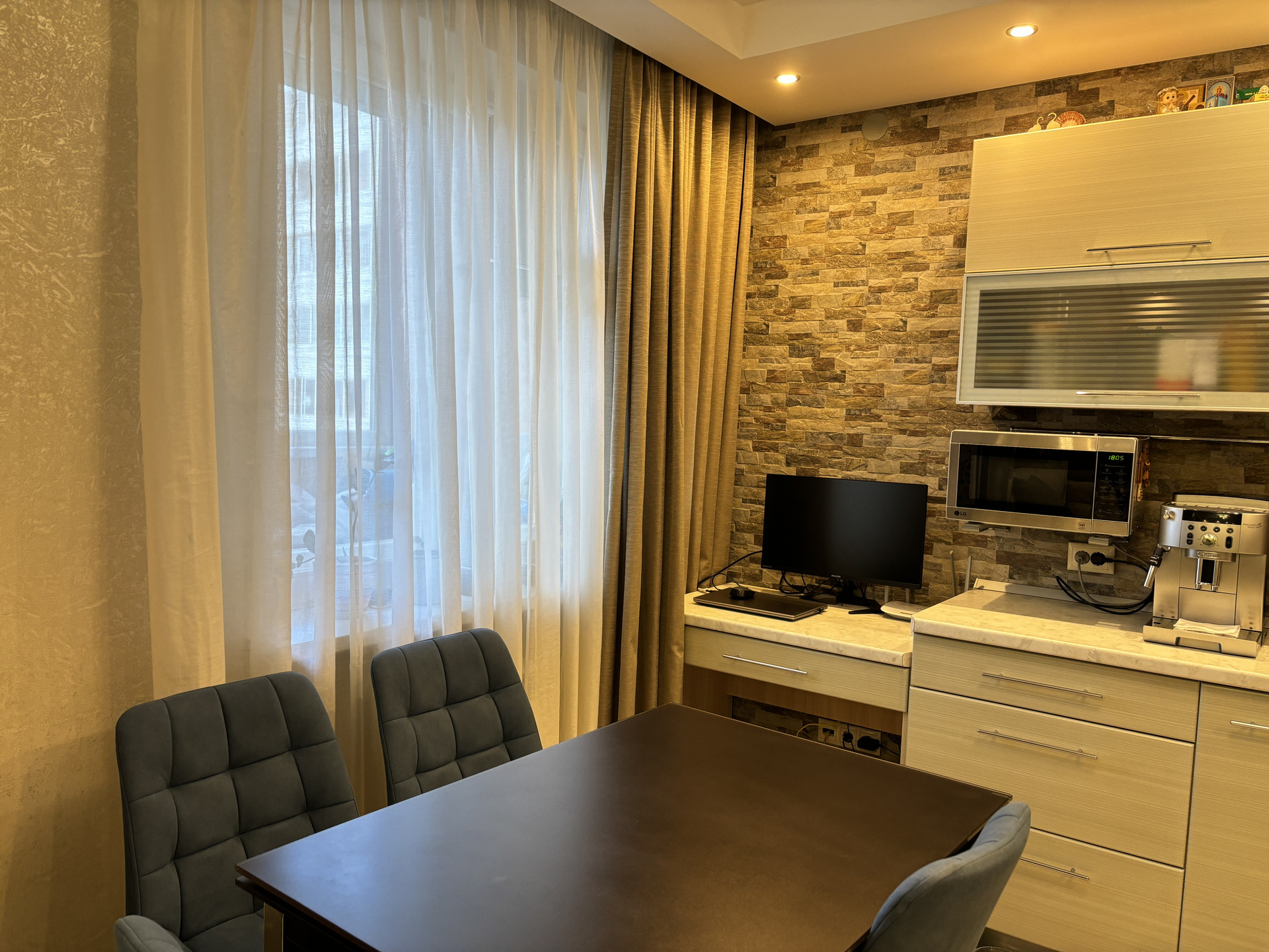 Срочно продам уютную квартиру с хорошим ремонтом. Качественная встроенная немецкая техника от производителей Kaiser и Zigmund&Shtain (посудомоечная машина, варочная поверхность, духовой шкаф, вытяжка, холодильник). Утепленный балкон, полы с подогревом. Большая придомовая территория, что редкость в наше время. Охраняемая парковка. Порядочные соседи. Удачное расположение дома, вдали от дорог, шума и грязи. Отличная транспортная и социальная инфраструктура.