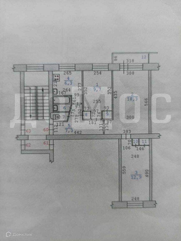 Общая площадь 59.4 м2