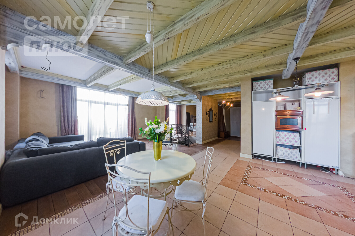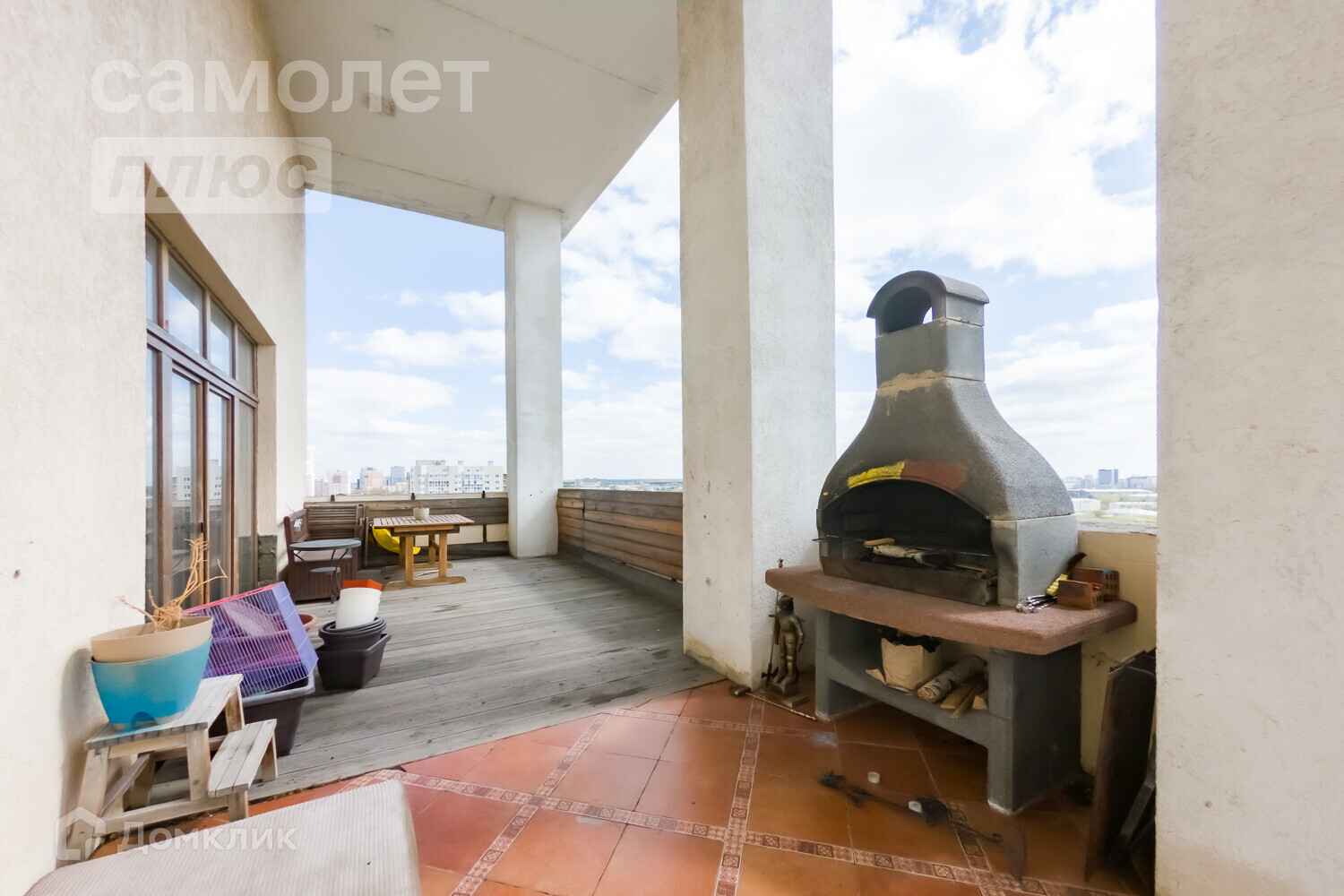 С террасы площадью 33,3 кв.м. открывается восхитительный вид на город. Потолки террасы высотой 7 метров дарят ощущение свободы и позволяют погрузиться в атмосферу загородного отдыха.