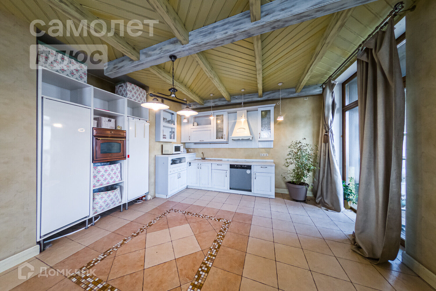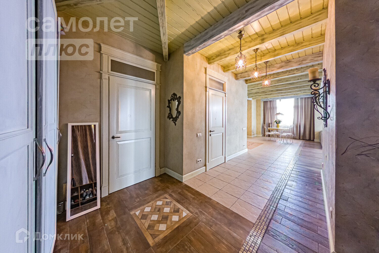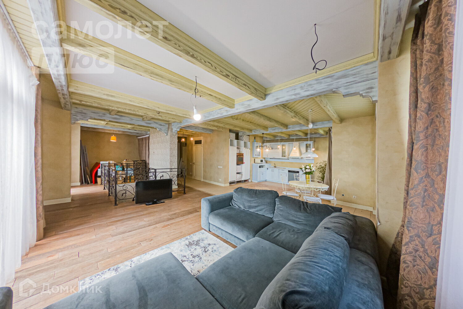 -Отделка потолка верхнего уровня - дерево (сосна), выполнена по уникальному проекту специально для этой квартиры, равно как и все 7 внутриквартирных двери. Высота потолков 16 этаж - 3,5 м, 15 этаж- 2,5 м.