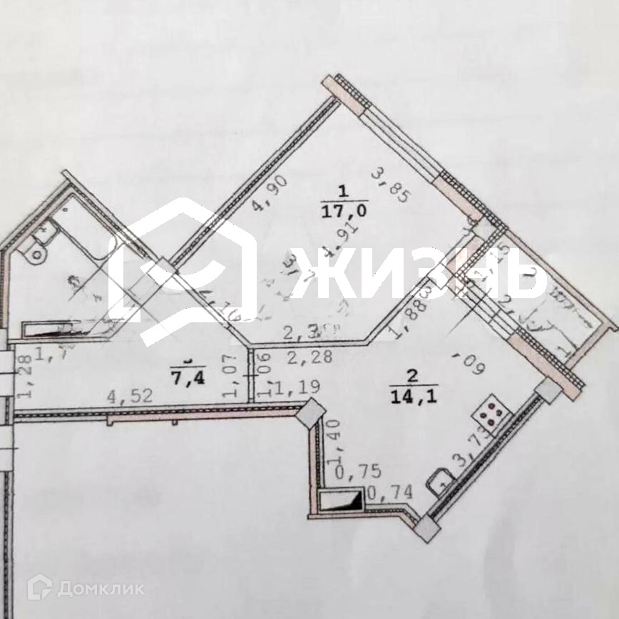 Жилая площадь 17 м2