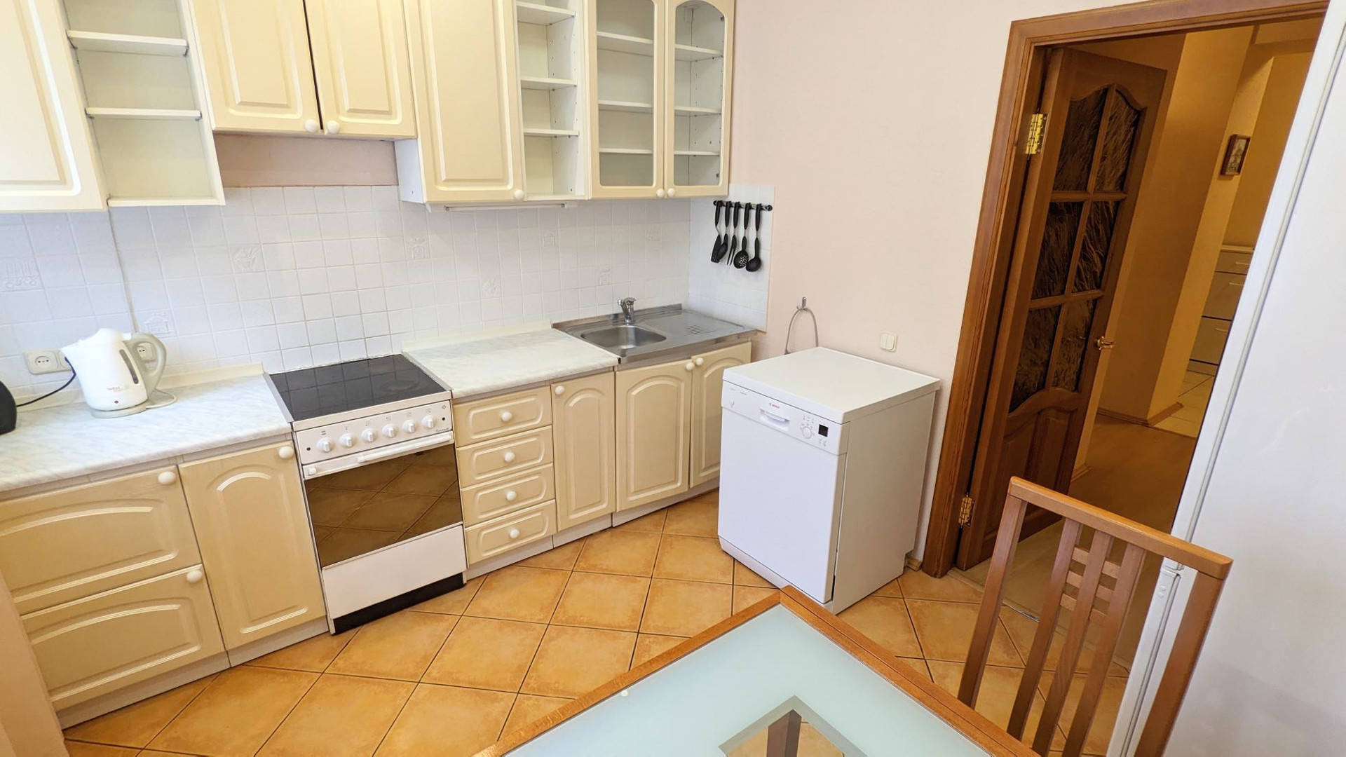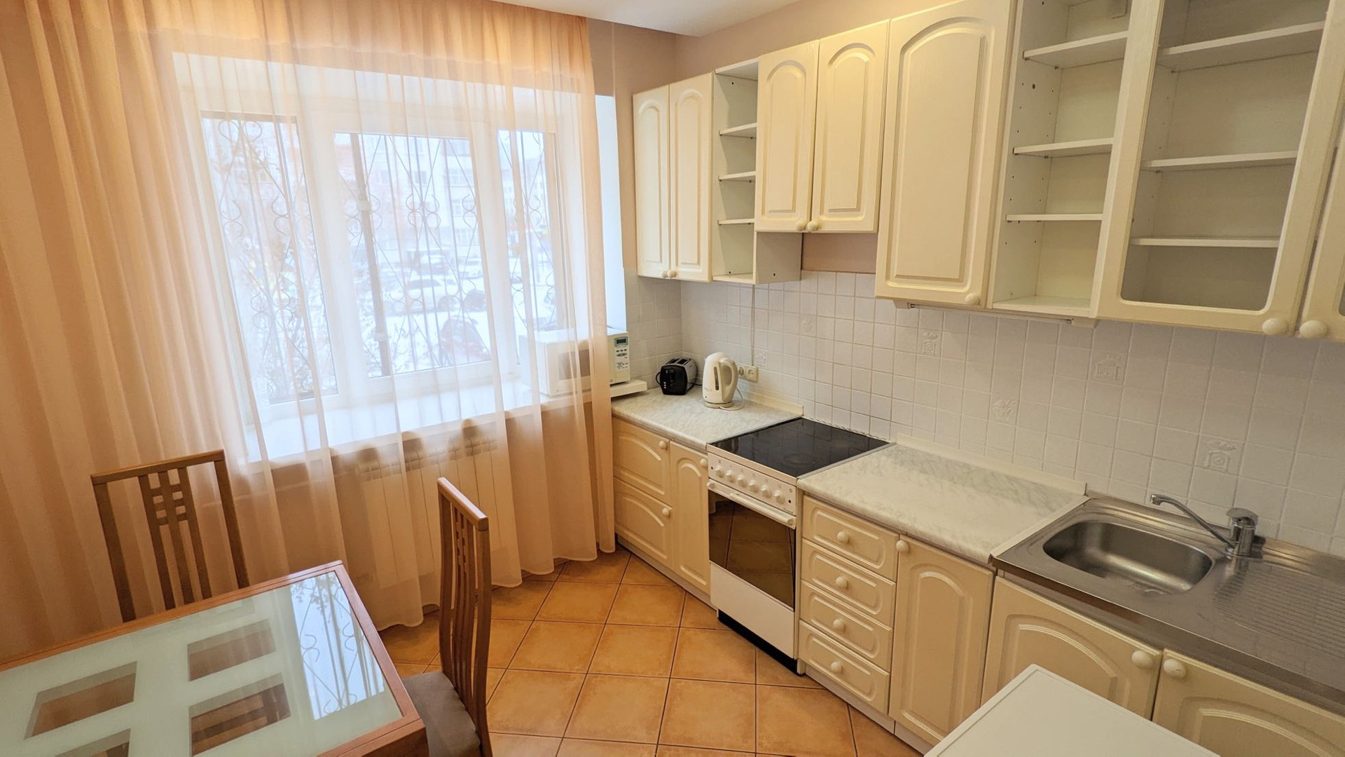 В самой квартире выполнен лаконичный ремонт, который при необходимости прослужит вам еще несколько лет. В квартире остаётся кухонный гарнитур и встроенный вместительный шкаф-купе в прихожей.