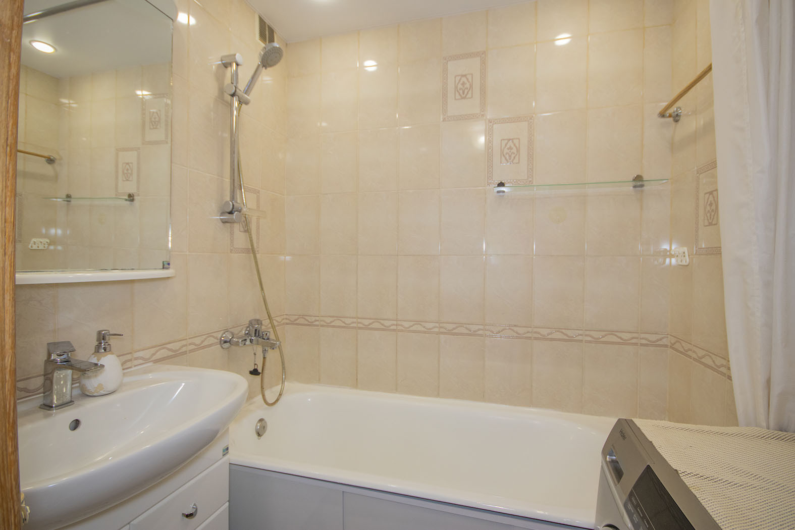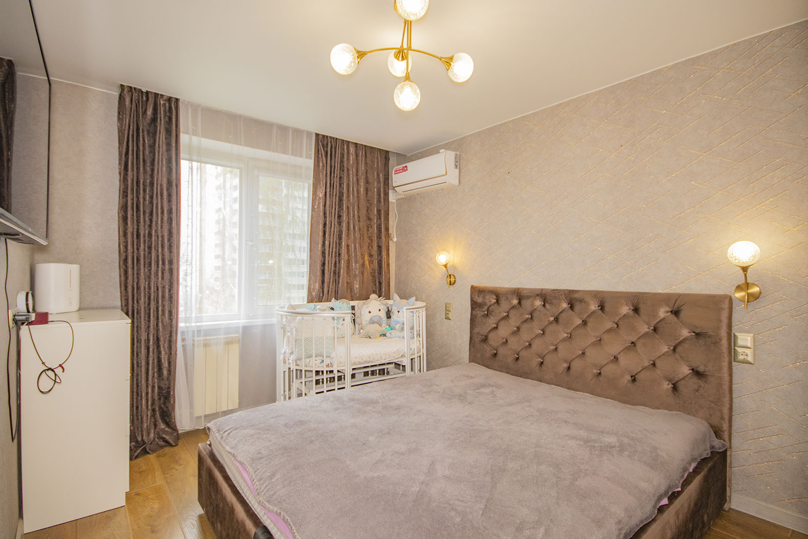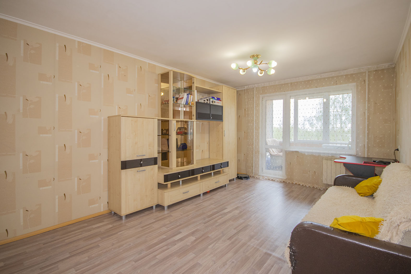 Так же можем оставить стенку и диван. Кондиционер и стиральная машина так же остаются в квартире.