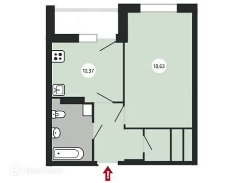 Просторная однокомнатная квартира. Вместительная кухня, откуда есть выход на лоджию. Большая жилая комната правильной прямоугольной форма. Удобный совмещенный санузел. У вас будет собственная гардеробная – мечта каждой женщины.