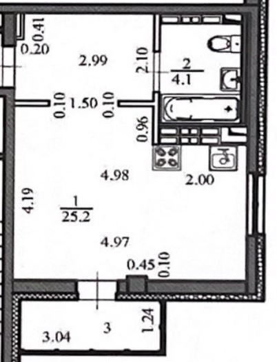 Жилая площадь 23.2 м2