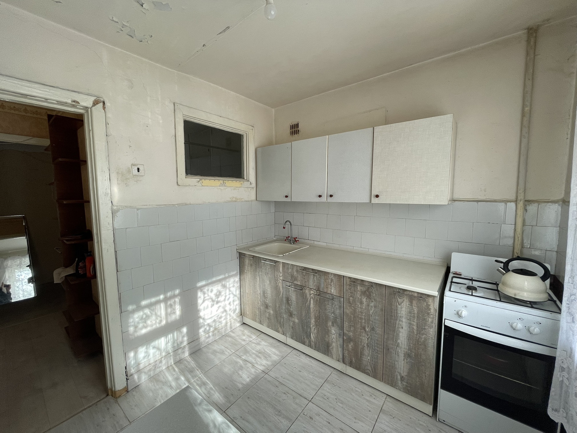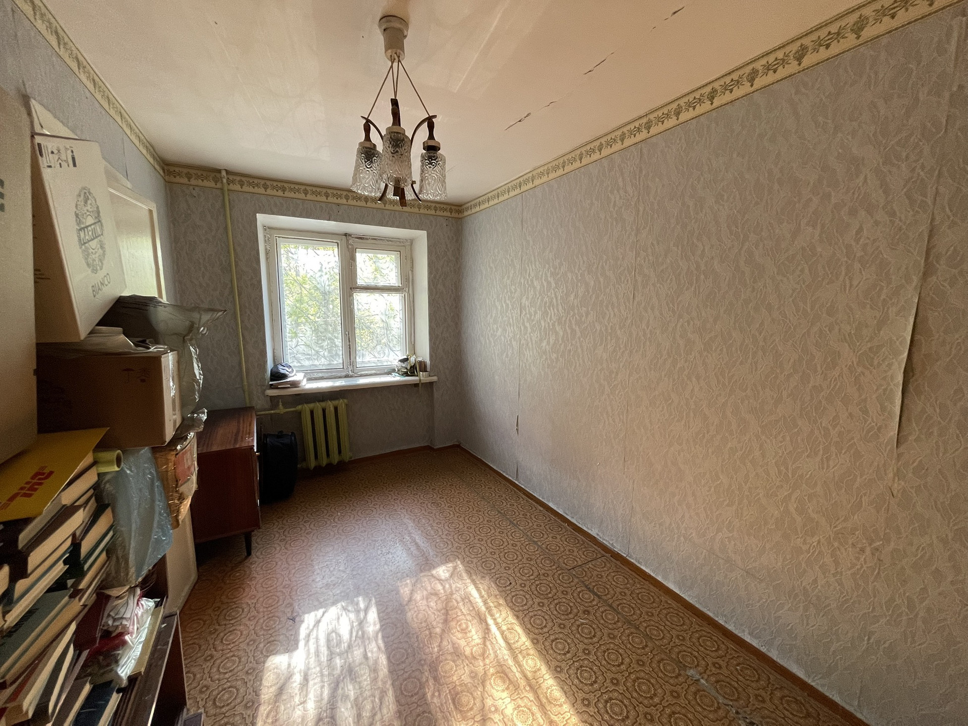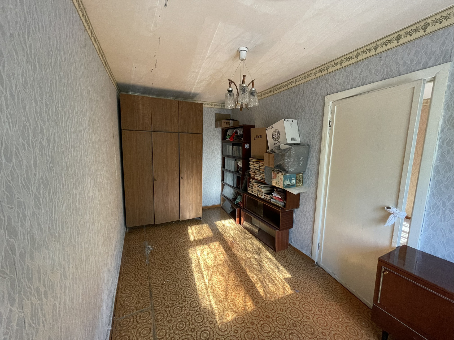 Кухонный гарнитур с газовой плитой остаются новым собственникам. Основная комната и спальня правильной геометрической формы. Так же есть гардеробная. В основной комнате расположен выход на балкон.